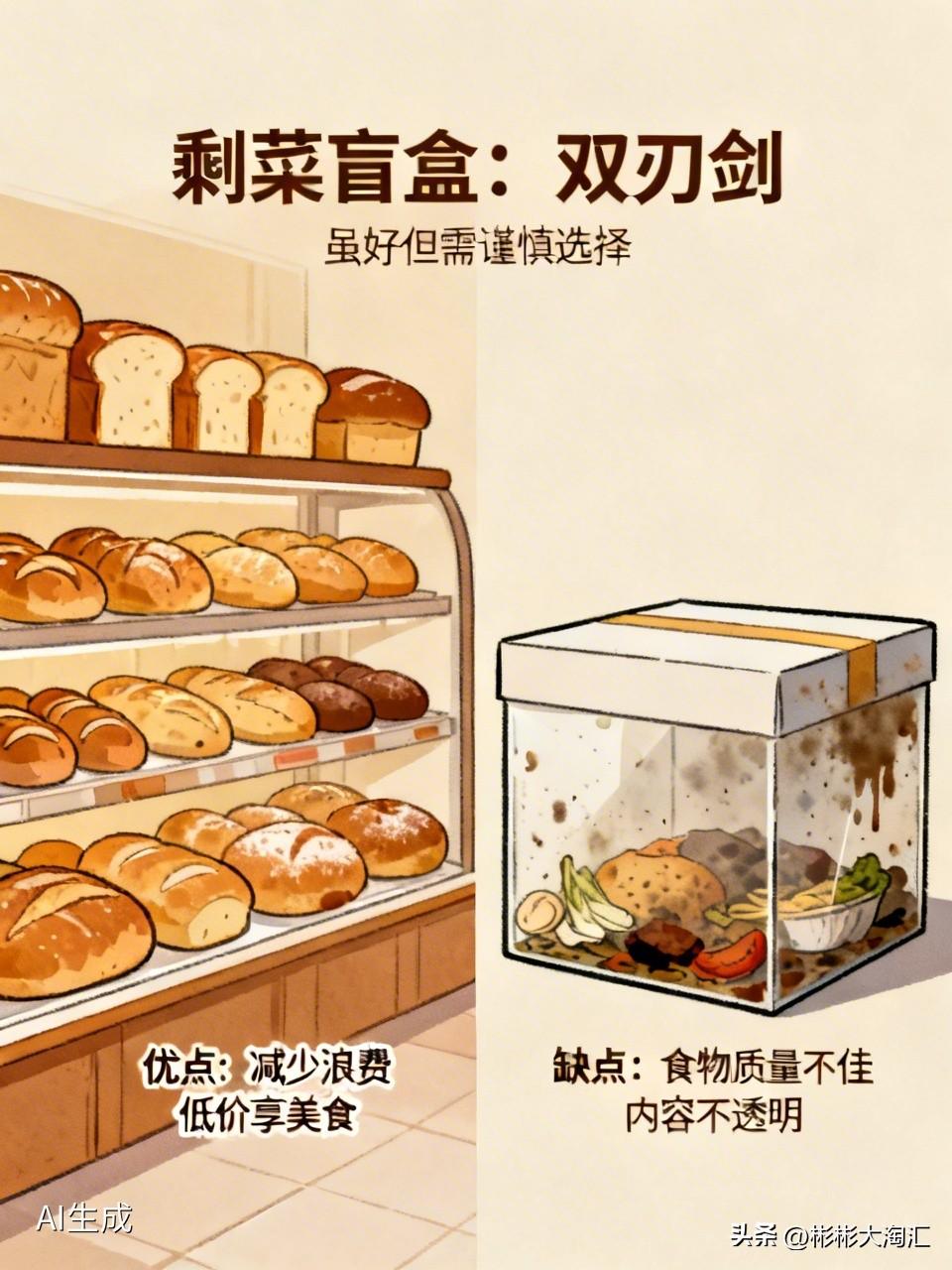 最近大家都在讨论的“剩菜盲盒”,我觉得它是把双刃剑。一方面,“剩菜盲盒”确实是个好东西。商家把临期食物以低价盲盒形式出售,既减少了食物浪费,又让消费者花小钱享美食。像一些面包店的盲盒,能以很实惠的价格买到多样面包,很划算。可另一方面,也存在问题。有些商家可能会把快要变质的食物放进盲盒,消费者拆开后发现质量不佳。而且,盲盒内容不透明,消费者可能买到不喜欢的食物。所以,“剩菜盲盒”虽好,但还需规范完善,才能更好地发挥作用。