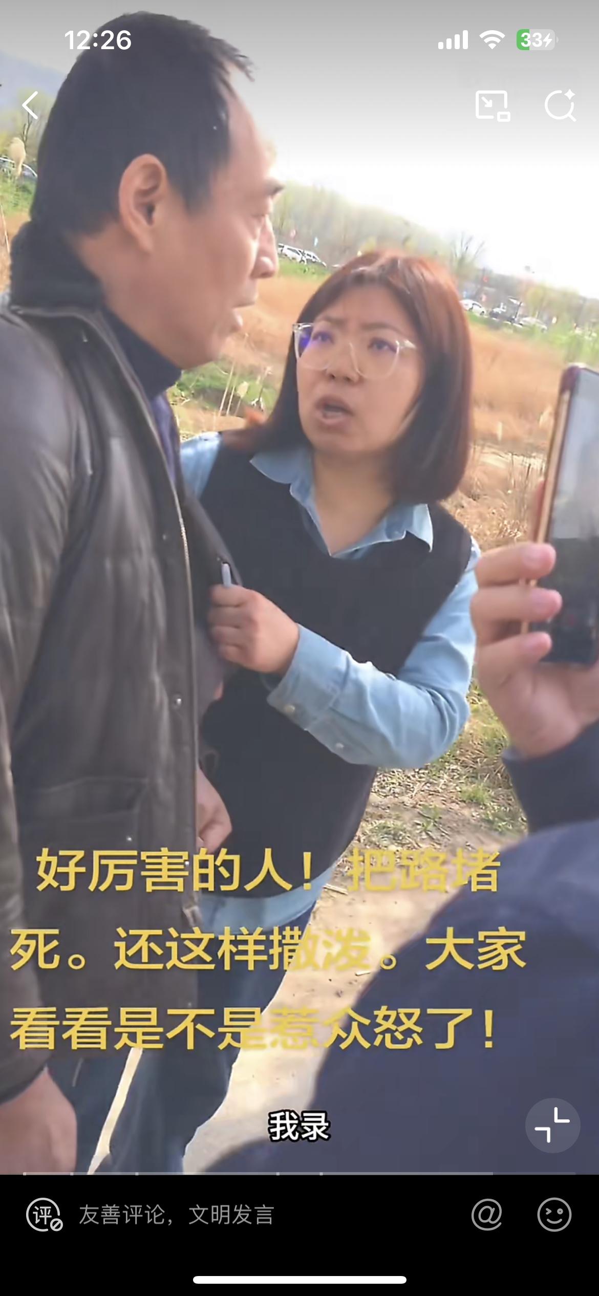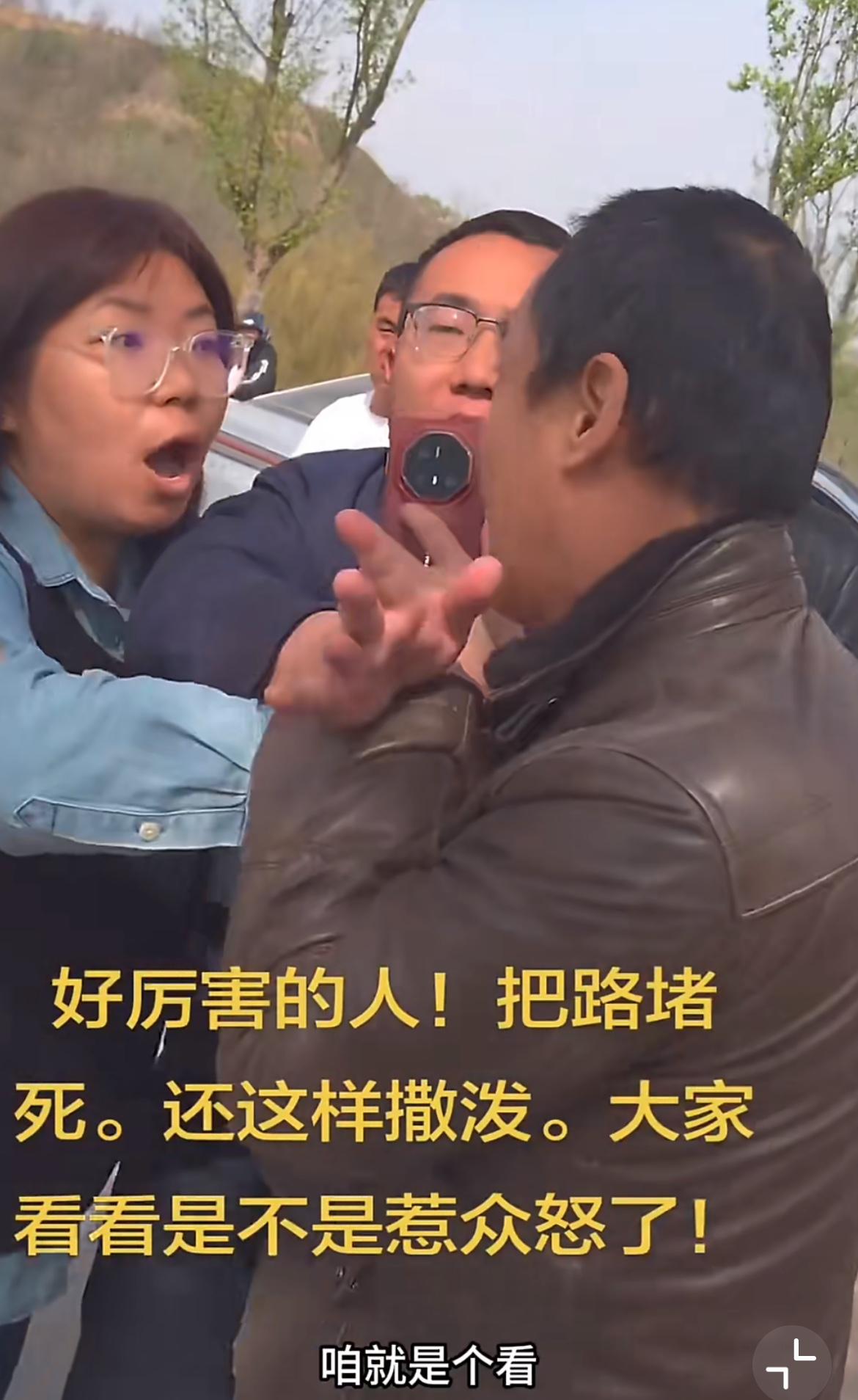 小仙女驾车把踏青的路给堵了,引起公愤。一位大哥实在看不过去,和小仙女理论,不小心把她珍贵的手机碰地上了。小仙女直接就炸了,不停的纠缠大哥,叫他赔手机,众人纷纷围观。小仙女不依不饶,大哥全程保持沉默,没有表示要赔手机,也没有说不赔。这让小仙女很恼火,动手拍了他的头。堵路,蛮横撒泼,不为自己的错误检讨。对说公道话的人进行言语、人身攻击,这该如何处理。
