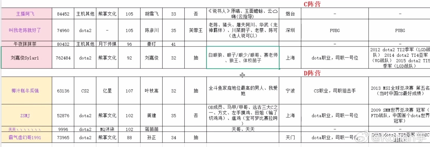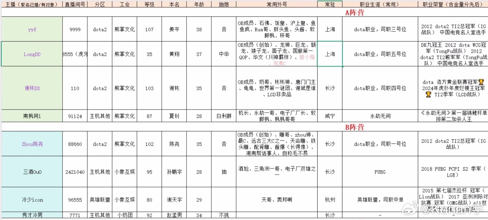 刀区团播各大队长名单介绍完整版!dota2