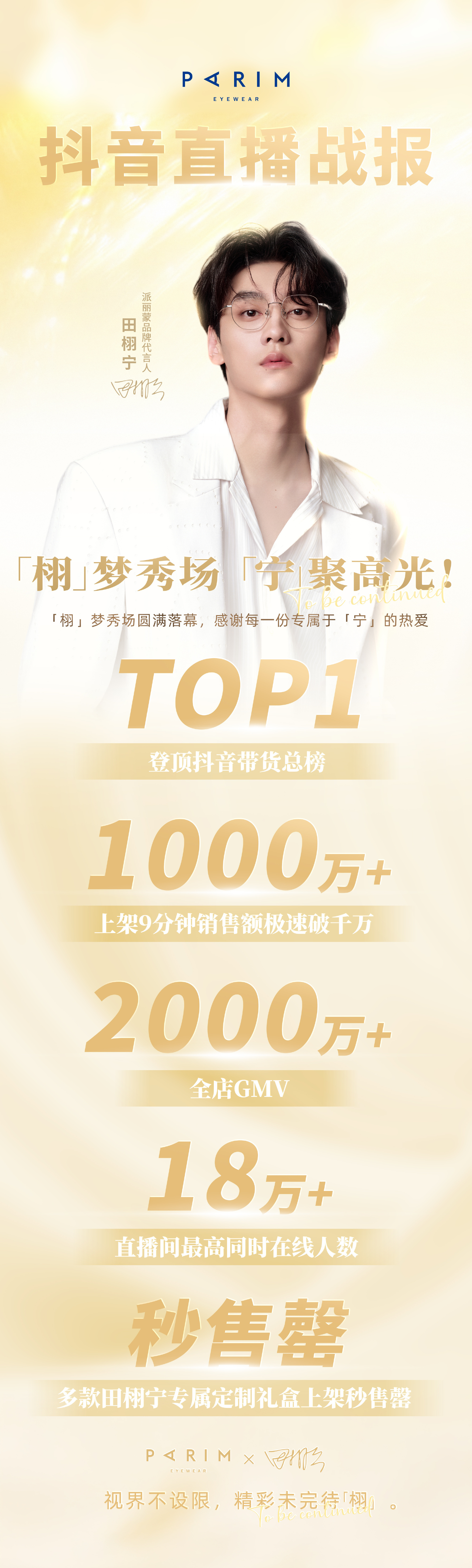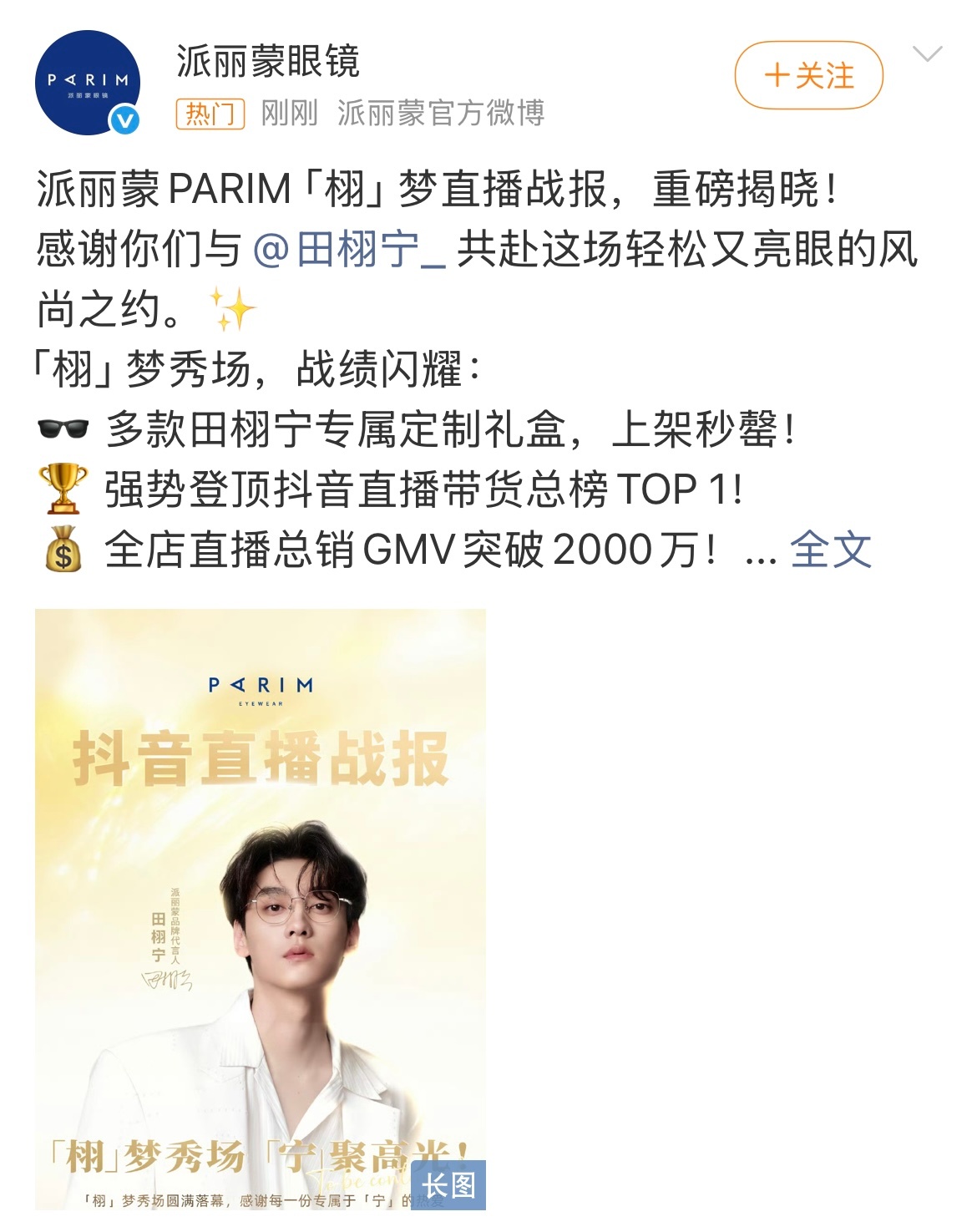 派丽蒙田栩宁战报田栩宁派丽蒙直播战报!强势登顶直播带货总榜TOP1;上架9分钟销售额极速破千万;全店直播总销GMV突破2000万;最高在线人数18万+!每一项数据都在印证田栩宁超强的品牌号召力与商业价值🔥田栩宁商业价值好顶