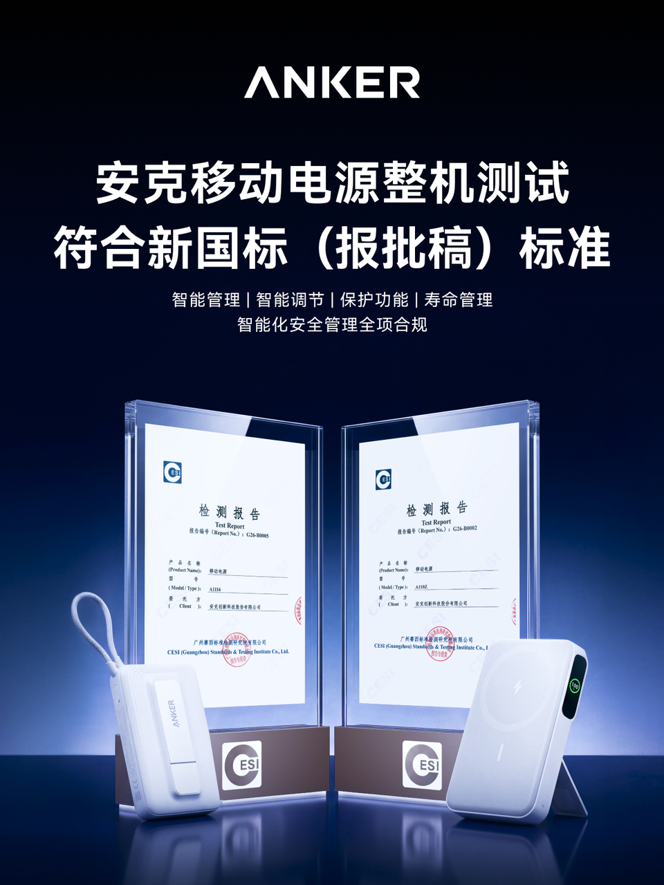 充电宝新国标出台 移动电源强制性国家标准发布 等了这么久,充电宝新国标今天终于正式落地!作为行业最新的强制性安全规范,这次新规直接拉高了整体安全门槛,也让行业告别了低价内卷,未来市面上只会留下更安全、更靠谱的产品,以后日常用充电宝也会更放心。安克作为参与新国标全项制定的充电品牌,也同步带来了A1116、A110Z两款新品,率先通过新国标整机测试,是行业里第一批合规的产品。它家自研的安克智能盾这次也安全升级,电池防护、机身耐摔再到智能监测都考虑到了,还通过了更高等级的阻燃和安全标准测试。我看了下,不管是想选磁吸便携的,还是要 45W 快充自带线的,这次都有对应的款式,日常用着确实安全省心。另外,听说安克这个月还会再发两款磁吸充电宝,也都通过了新国标测试,看来安克的安全合规的产品线铺得很快。安克率先通过新国标测试
