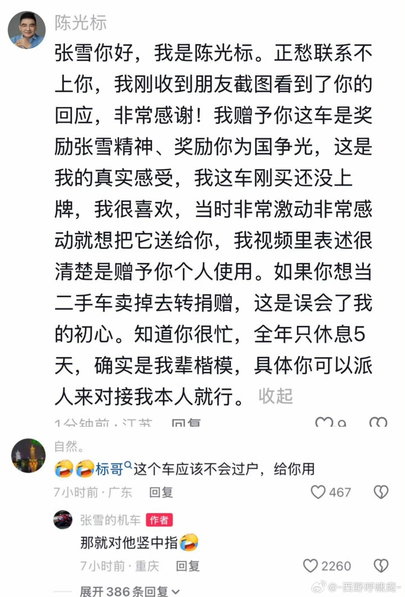 陈光标回应张雪要卖车张雪不按套路出牌,中国首善进退两难,笑死我了