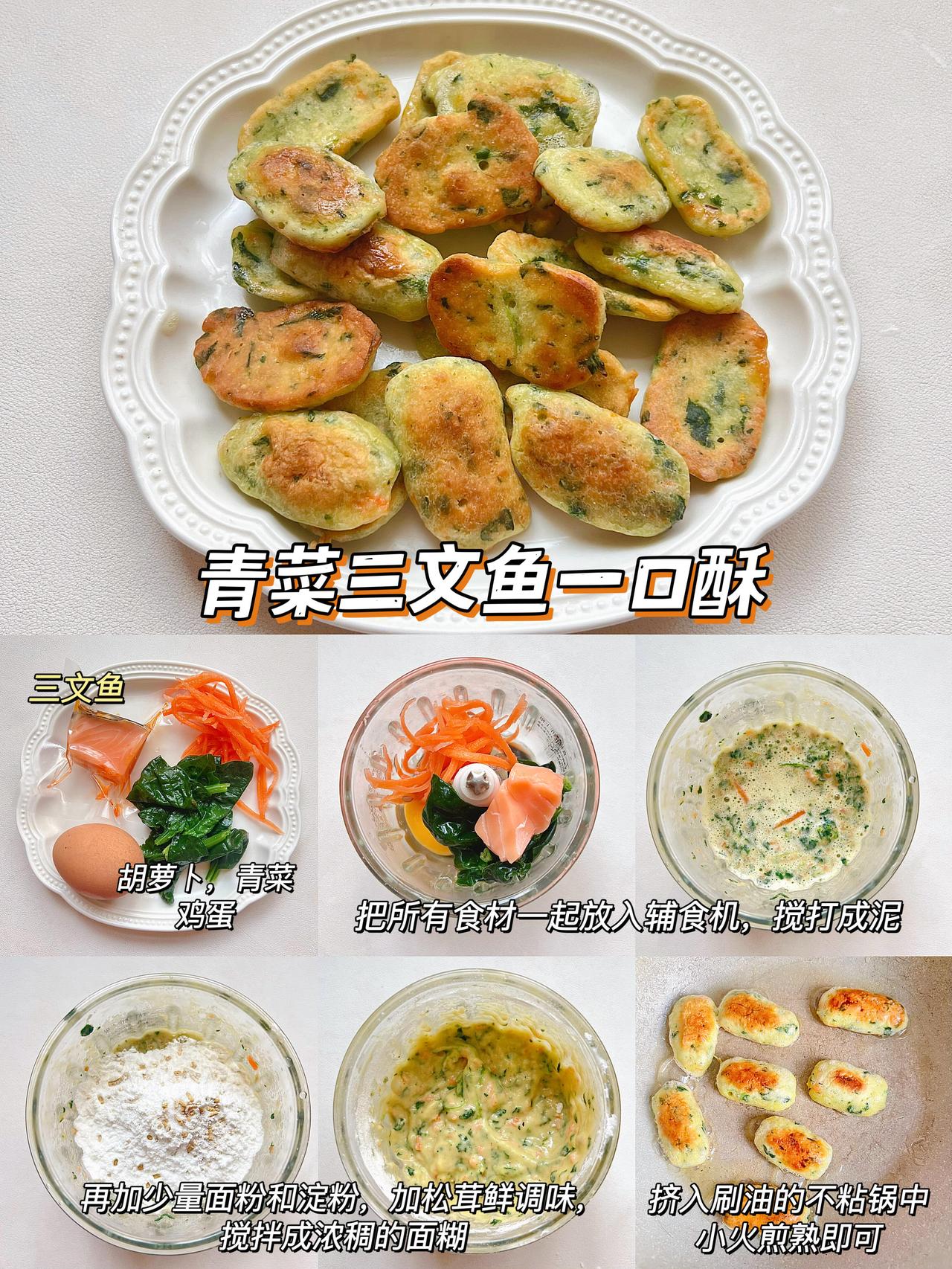 当妈后才发现,最治愈的瞬间就是看着宝宝大口吃饭的样子🥰 分享6快款从小吃到大的神仙辅食,简单到连厨房小白都能轻松搞定! ✨时蔬鹅肝早餐饼 ✨菠菜鹅肝鸡蛋饼 ✨西蓝花鹅肝鸡蛋饼 ✨青菜三文鱼一口酥 ✨海苔三文鱼饭团 ✨迷你香蕉小饼 (做法都放在图里啦~)