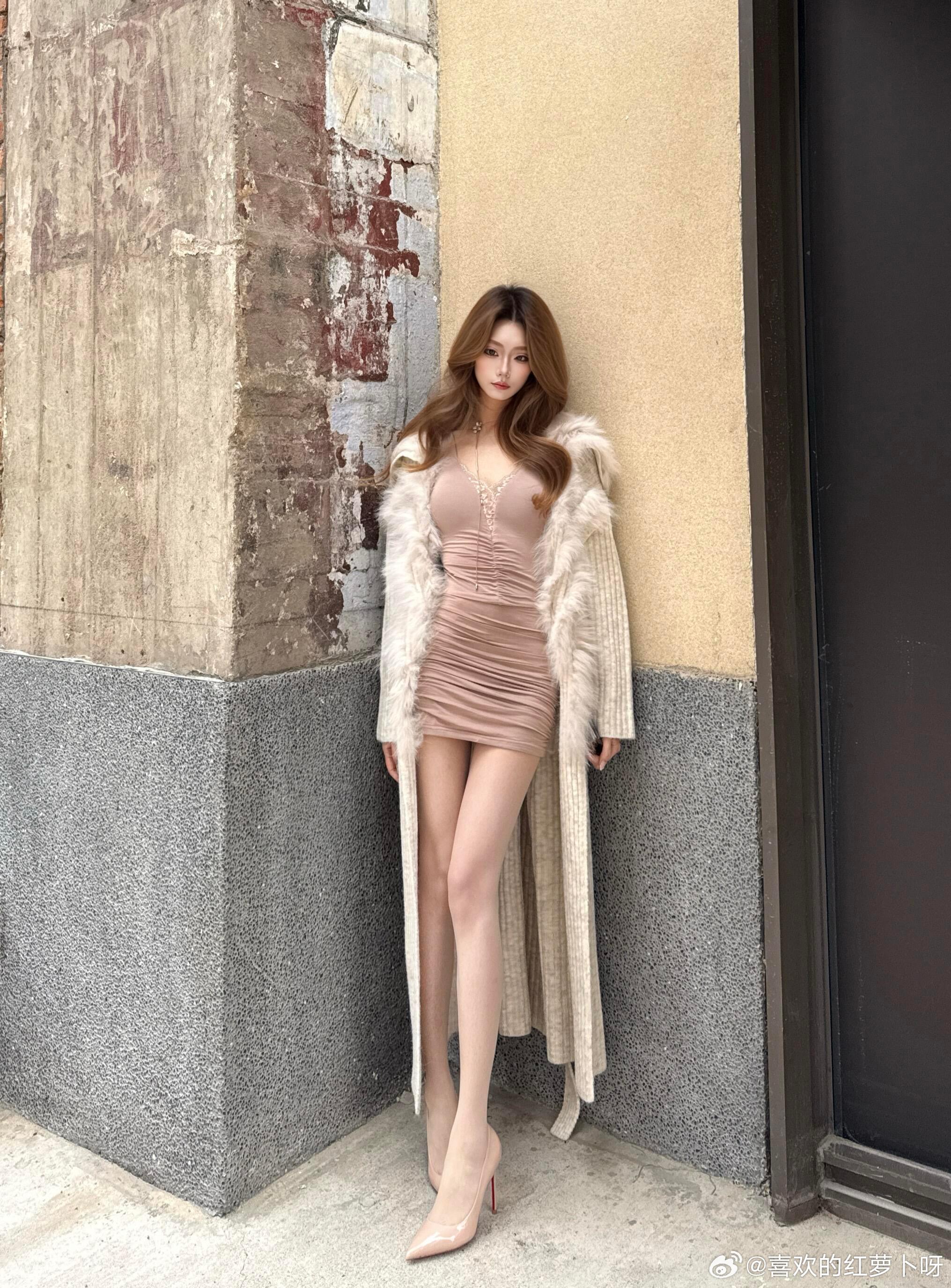 发现你的魅力粉色修身针织连衣裙搭配裸色尖头高跟鞋,优雅温柔,尽显女性知性魅力。