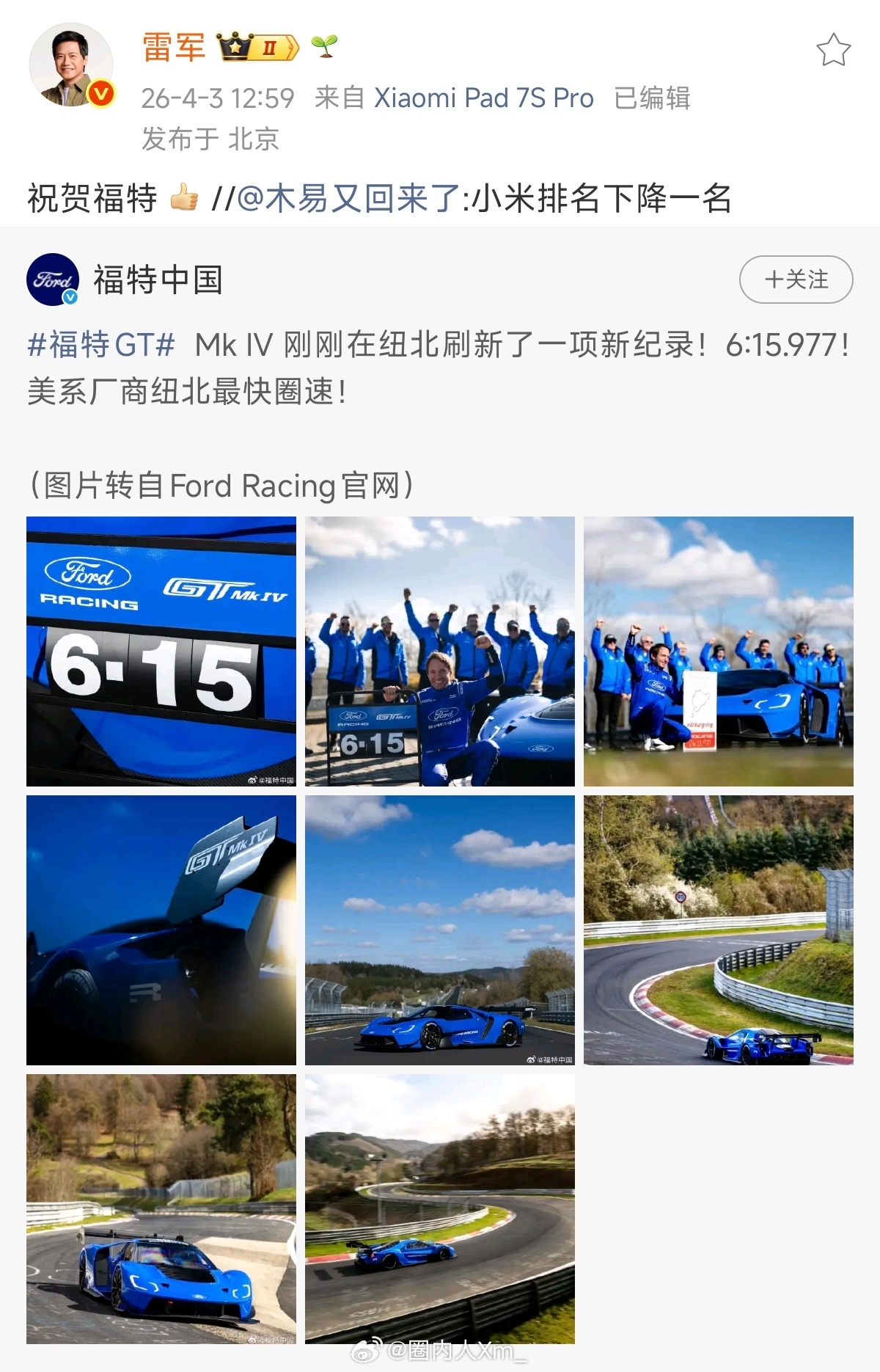 优秀的对手才会让强者更强,恭喜福特,小米加油。也期待更多国产汽车出现在全球榜单。