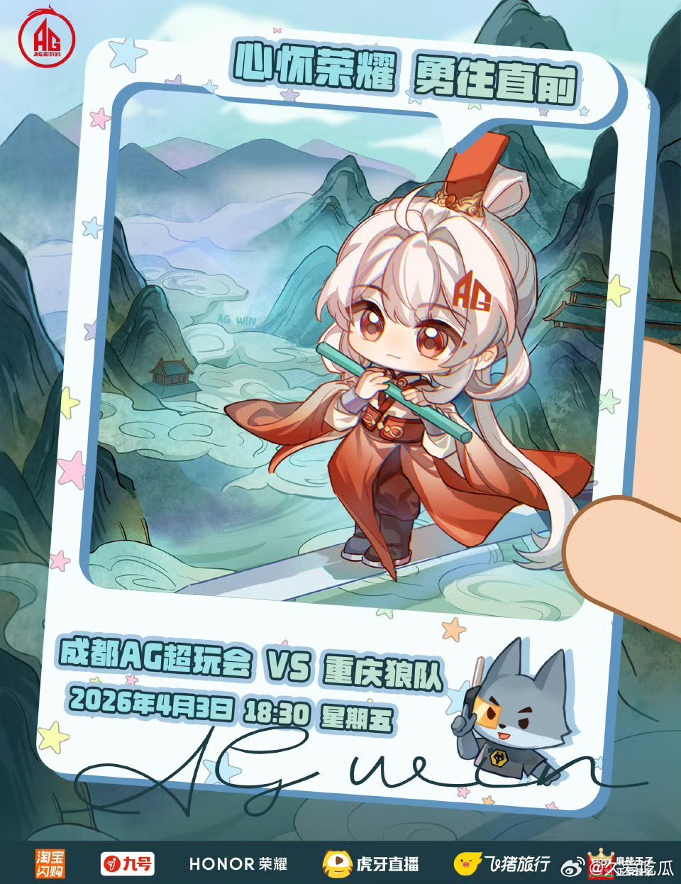 AG对战狼队 |赛前海报18:30成都AG超玩会【 阿银时空旅行计划•仙侠世界