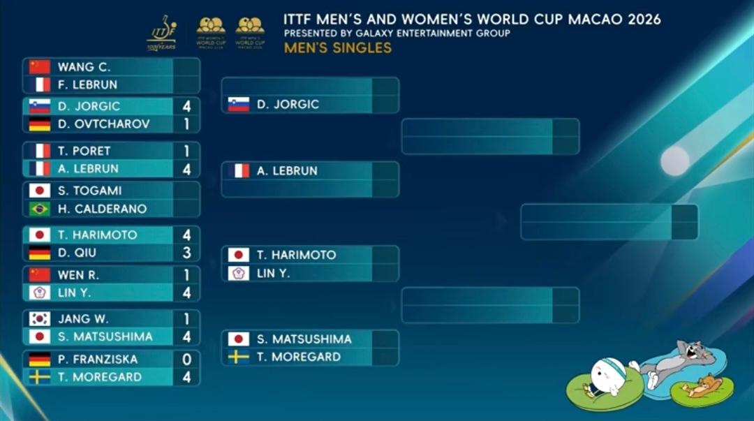 温瑞博1-4负林昀儒,澳门世界杯国乒男单仅剩王楚钦! 北京时间2026年4月