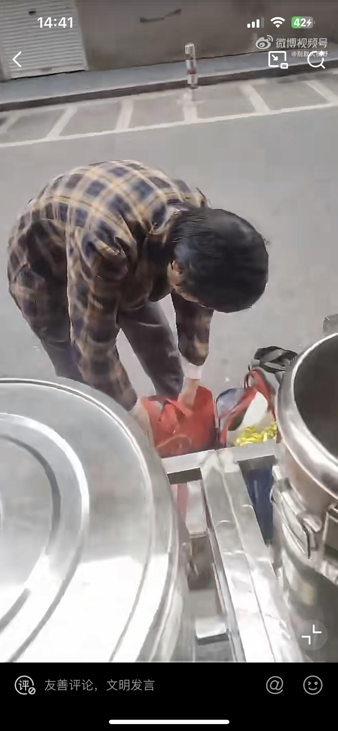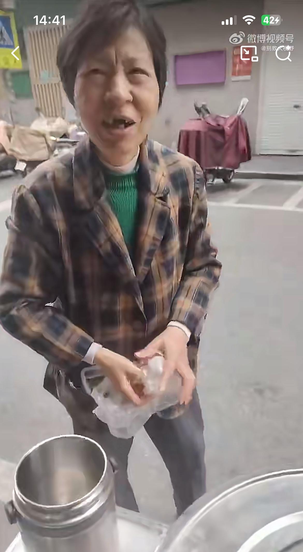 图中的大妈因为家庭困难,卖盒饭的摊主送了一份饭给她吃。令摊主没想到的是,第二天她又过来蹭饭,蹭饭不说,还带了两个不锈钢的桶,让摊主给她装满,她打包带回去吃。搞不懂为什么老太脸皮这么厚,摊主好心也不能把人家当免费长期福利。他是小本生意,靠这个养家糊口,风吹日晒不容易,人家可怜你一次,也不要白嫖上瘾,占人家便宜的心理没够。