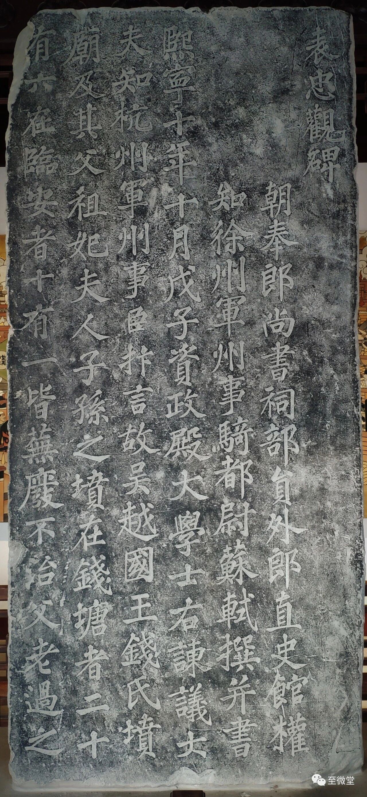 如今,明刻《表忠观碑》就矗立在西湖边的钱王祠内,该碑为嘉靖三十九年(1560)杭州知府陈柯依宋刻拓本重刻,四石(八面),现存三石(六面),第二石已佚,但八面均有旧拓本传世。