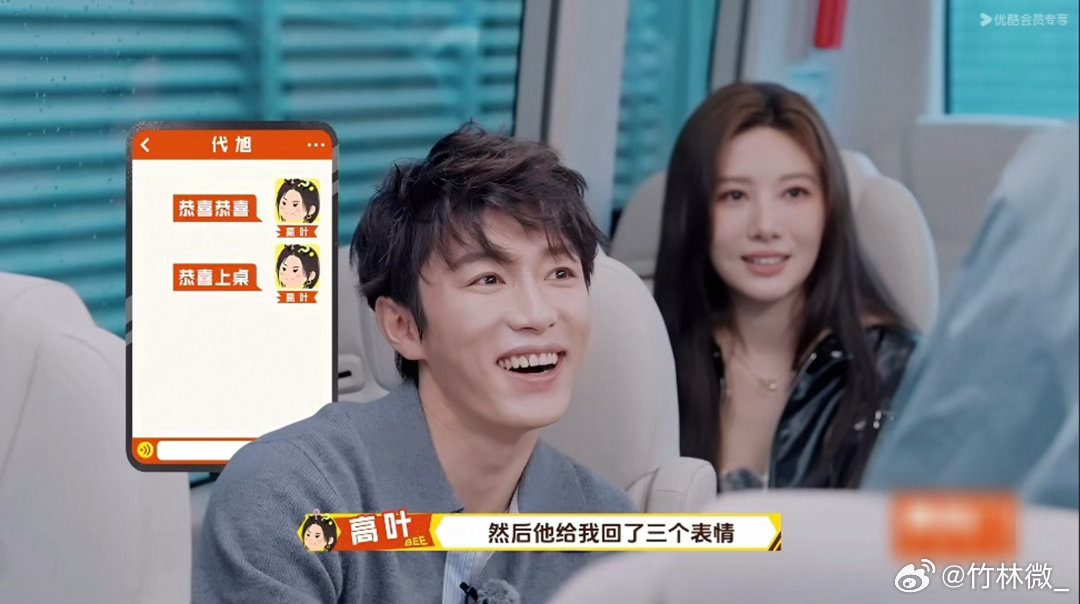 高叶说代旭上桌了周五晚高疯高叶亲自玩上桌梗,把代旭逗得反应超大,俩人私下关系也太好,这段互动又搞笑又真实。