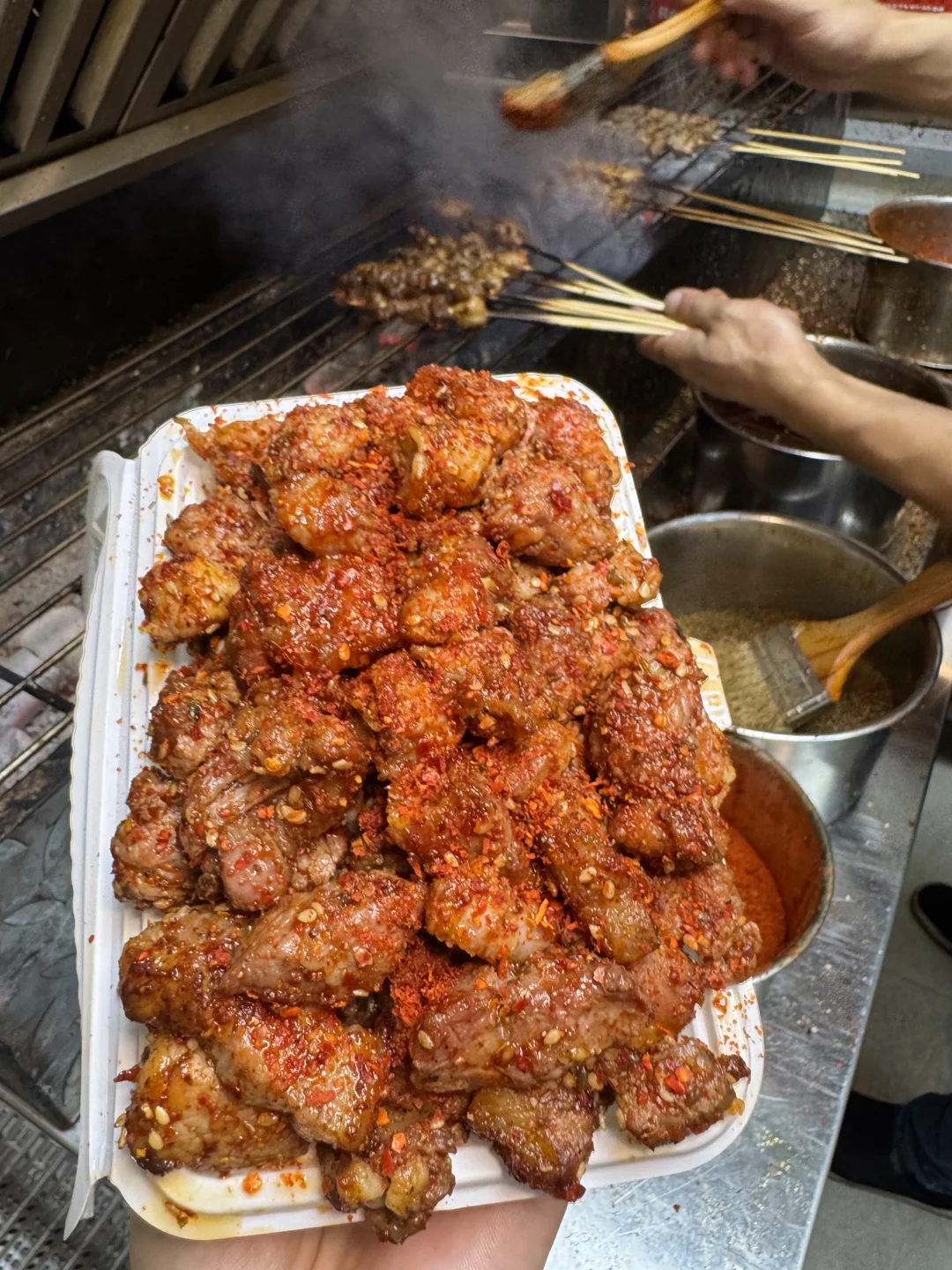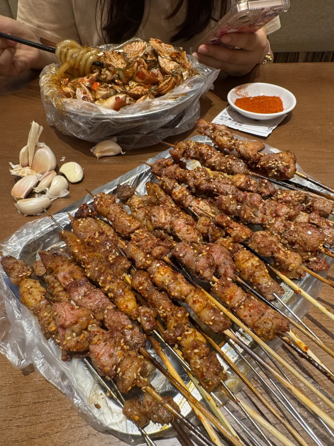 终于开了!好好吃的江西烧烤! 都是阿姨手工串的鲜肉烧烤 牛肋条、烤排骨、五花肉、甜翅… 在景德镇很出名,炒菜也非常好吃 还有各种小吃和甜品种类很多