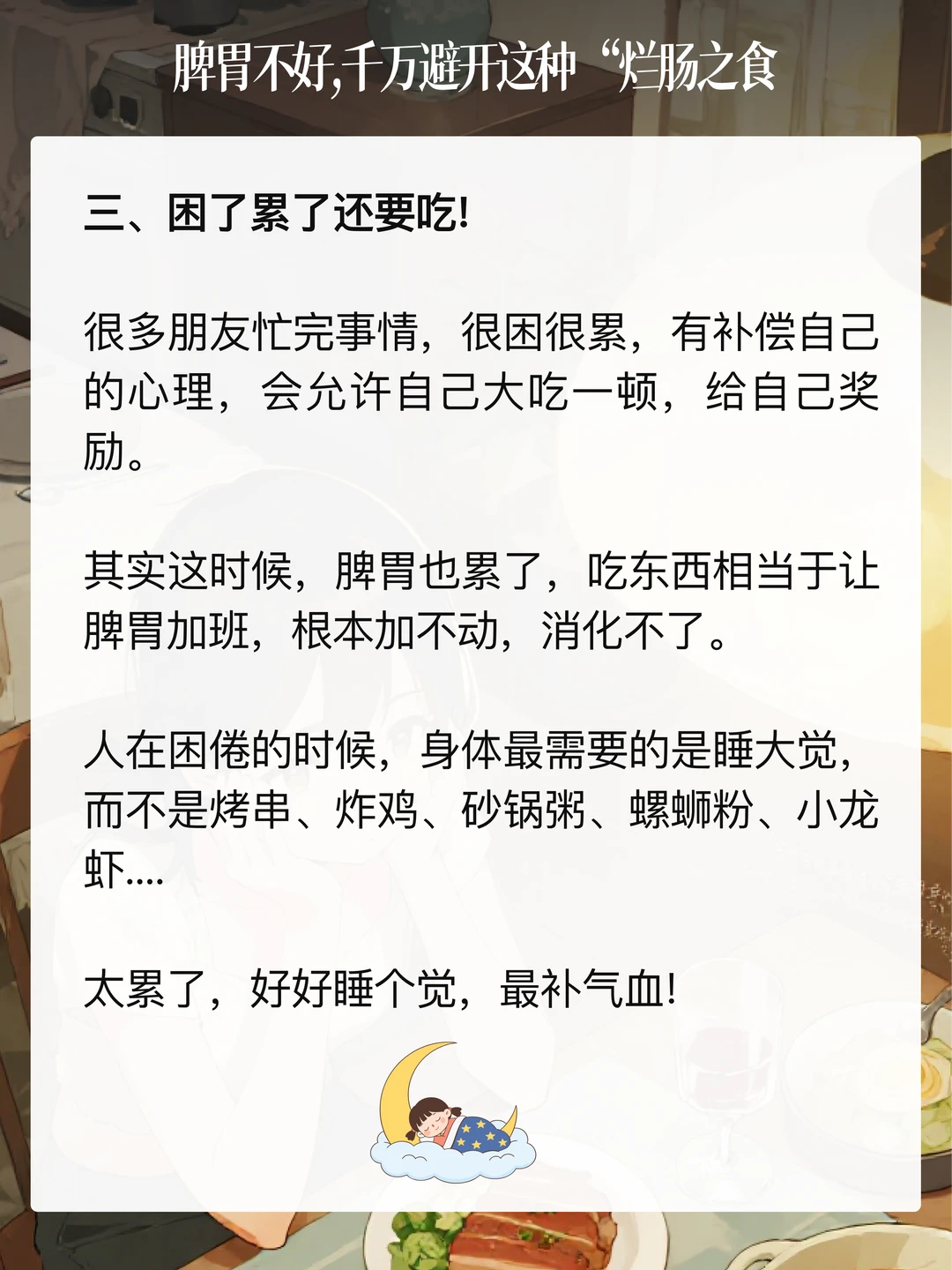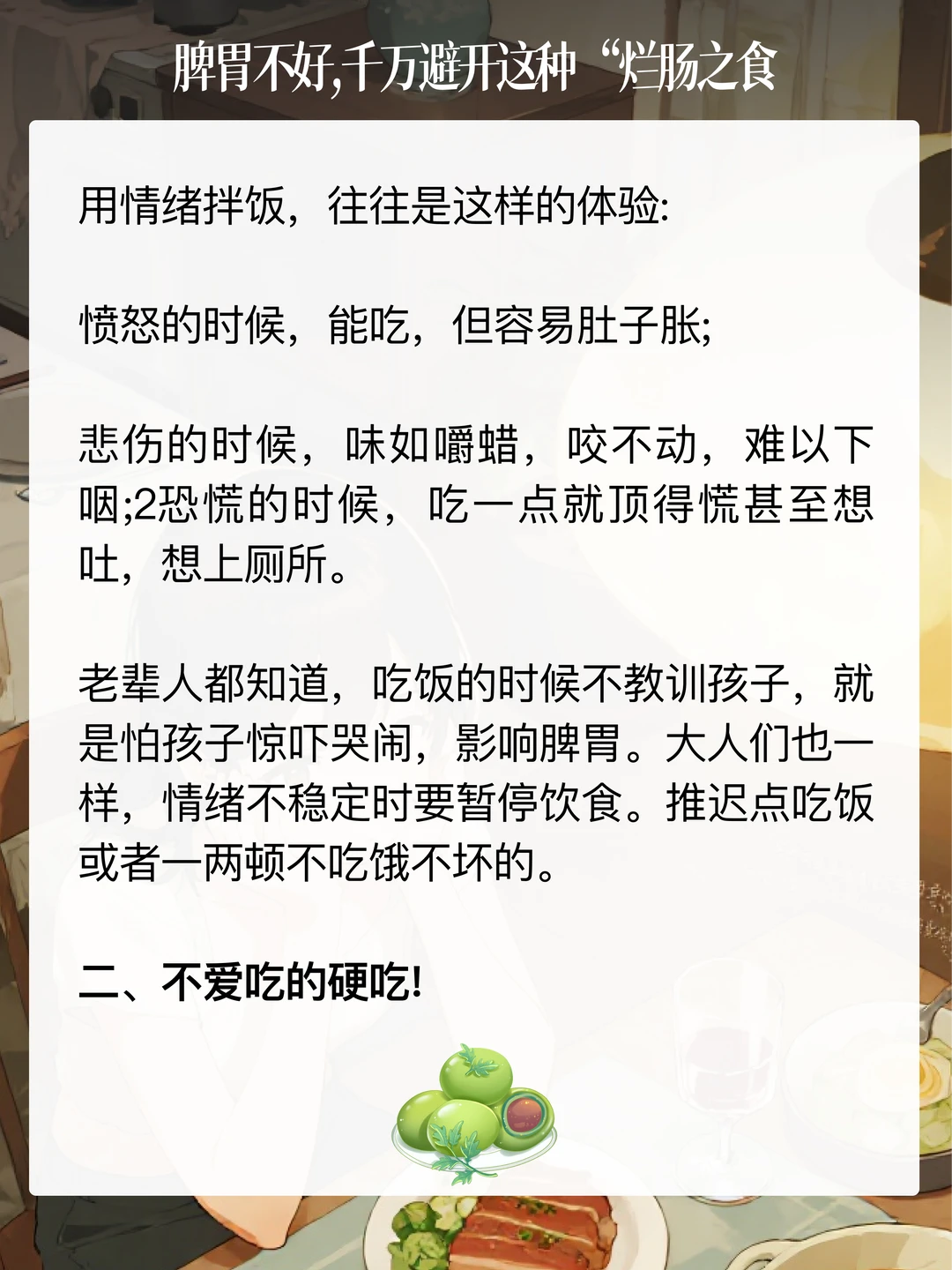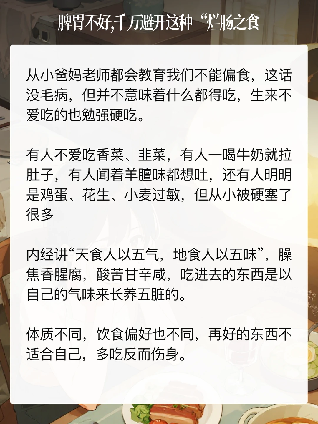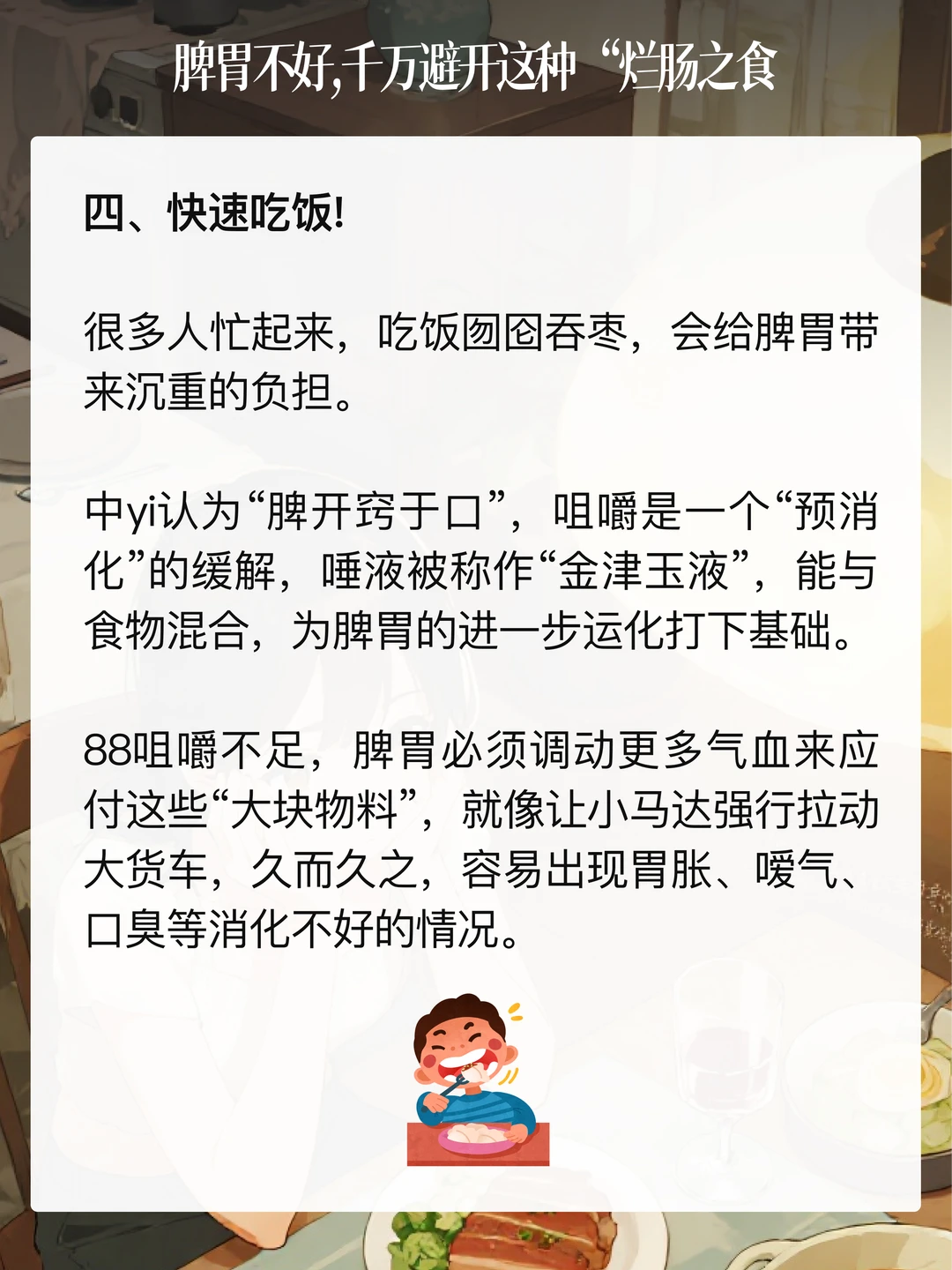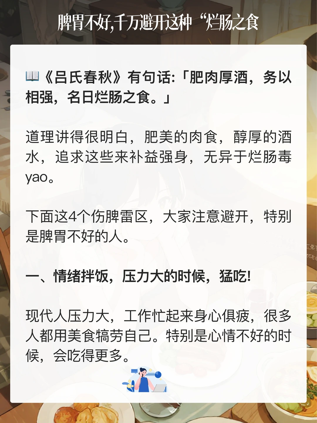《吕氏春秋》有句话:「肥肉厚酒,务以相强,名日烂肠之食。」 道理讲得很明白,肥美的肉食,醇厚的酒水,追求这些来补益强身,无异于烂肠毒yao。 下面这4个伤脾雷区,大家注意避开,特别是脾胃不好的人。