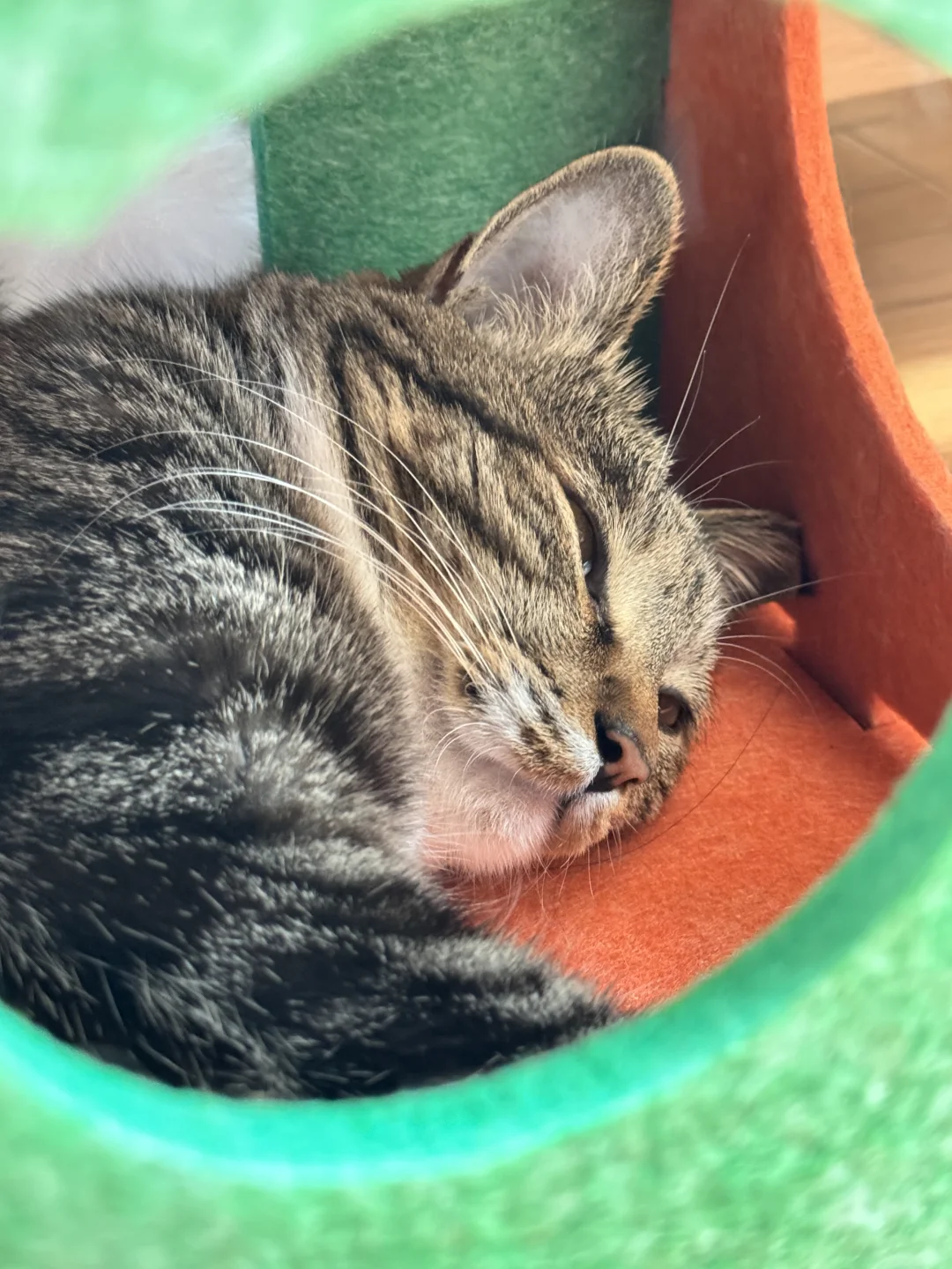 最近工作稍微轻松一些 每天有好多时间陪小虎疯玩 小虎玩累就找个满意的工作睡觉觉 这个毛毡隧道是它近期最爱 每个买回来的东西都被它稀罕 真是不浪费麻麻💰的好宝宝