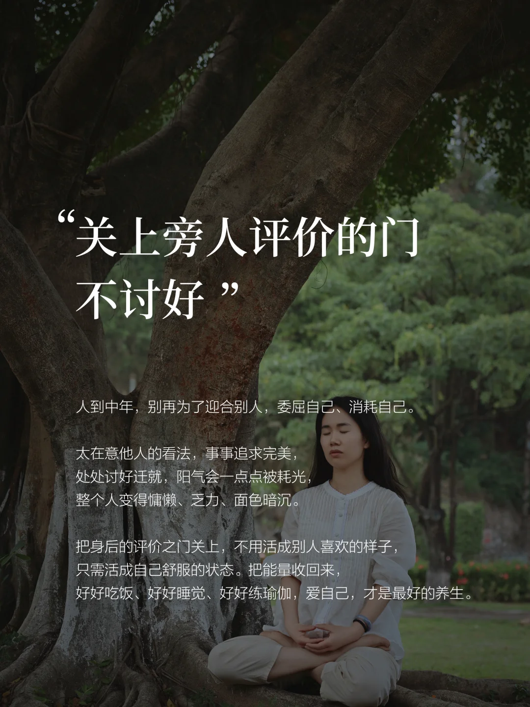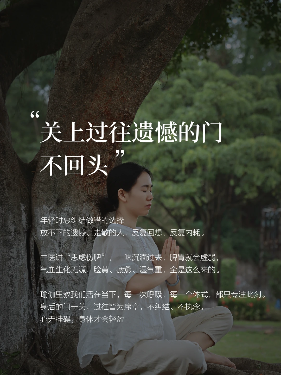 作为练了10年瑜伽、学6年中医的30+妈妈,深耕养生瑜伽这些年,见过太多中年姐妹,一边忙着养气血、调脾胃,一边被过往的琐事、旁人的眼光、无谓的内耗,拖得身心俱疲。 直到人到中年才彻底悟透: 养生先养心,养心先断舍。 女人这辈子,最该学会的本事,就是主动“关住身后的门”。 关上那扇门,不是逃避,而是放过自己,更是给身心减负,让气血顺、脾胃安、容颜缓老🌿 人到中年,最好的活法,莫过于: 关身后门,走眼前路,守当下心。 养好身心,不纠缠、不内耗、不回头,脾胃和顺,气血充盈,岁月自然温柔以待✨