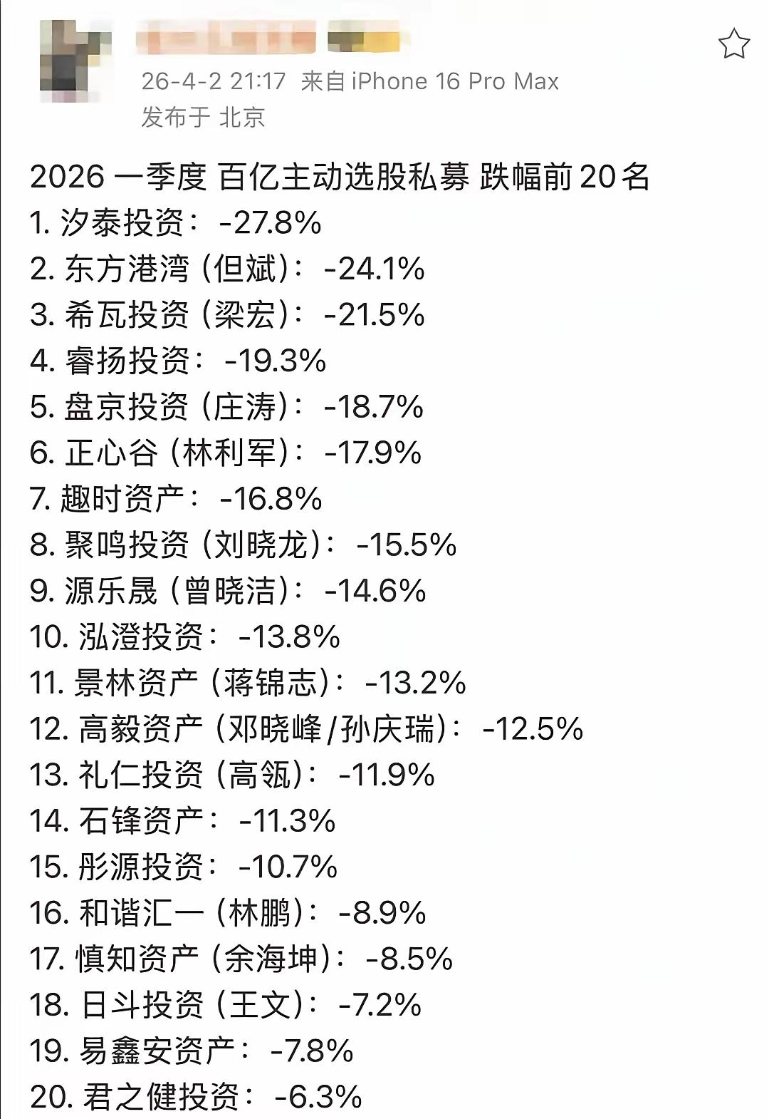 大佬对量化交易的预言应验了,今年私募第一季度的战绩惨不忍,这样的战绩跟职业操盘手的能力完全不匹配。 随着量化交易的资金越来越大,市场的大起大落是必然的,如果散户和大户都不交易了,量化交易之间就得互砍了。 量化交易的本质是交易,他们可能都不会去研究企业的基本面和前景,只要有热点有消息的地方他们就能去炒,比散户买得快出得快,更要命的是他们还能在买入的同时通过融券去做空。 这一周的股市几乎刷新了很多老股民的认知,天天下跌四千多个股,拉高的个股一周内a杀,这样的市场环境只能用地狱级来形容。