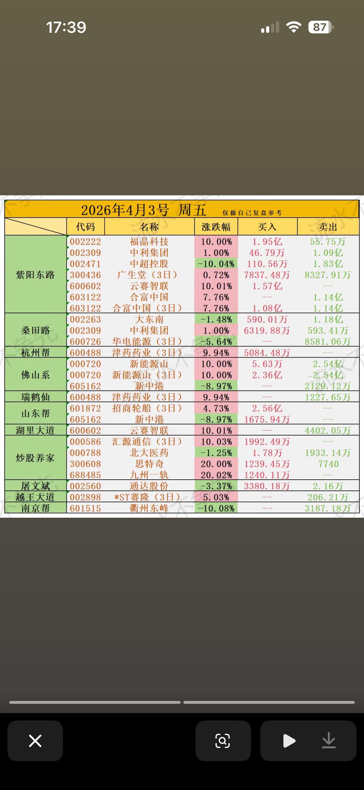 2026年4月3日游资龙虎榜,绿红分明,投资参考!📈📉