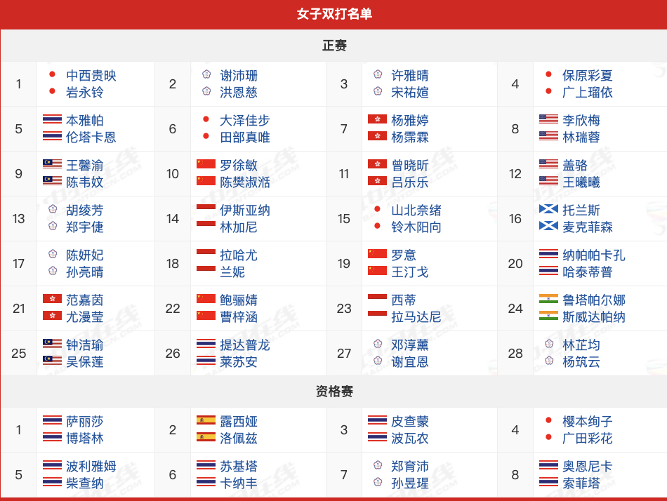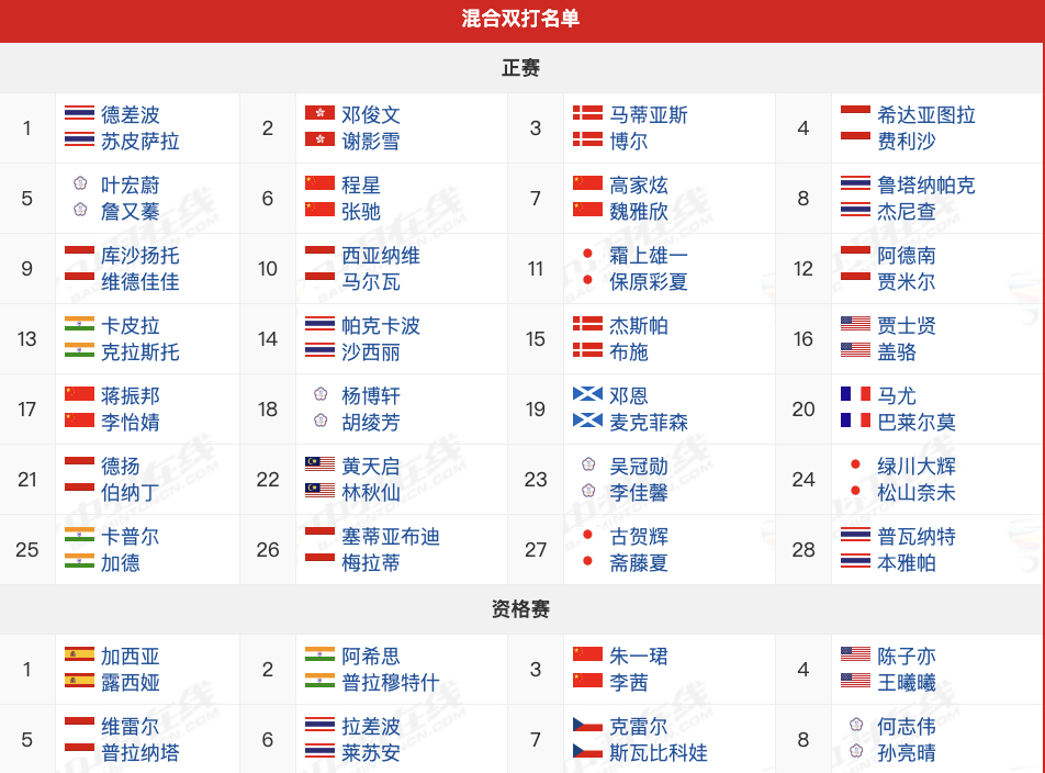 国羽混双拆队2026年泰国羽毛球公开赛,超级500赛,5月12日-17日,国羽各单项参赛名单: