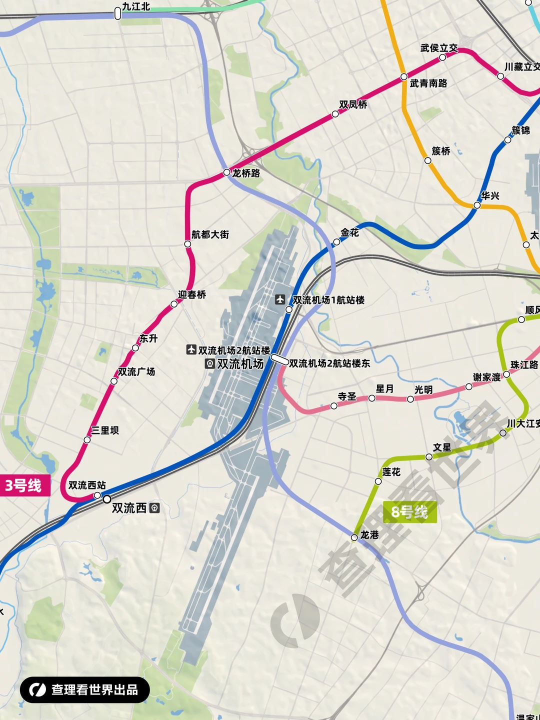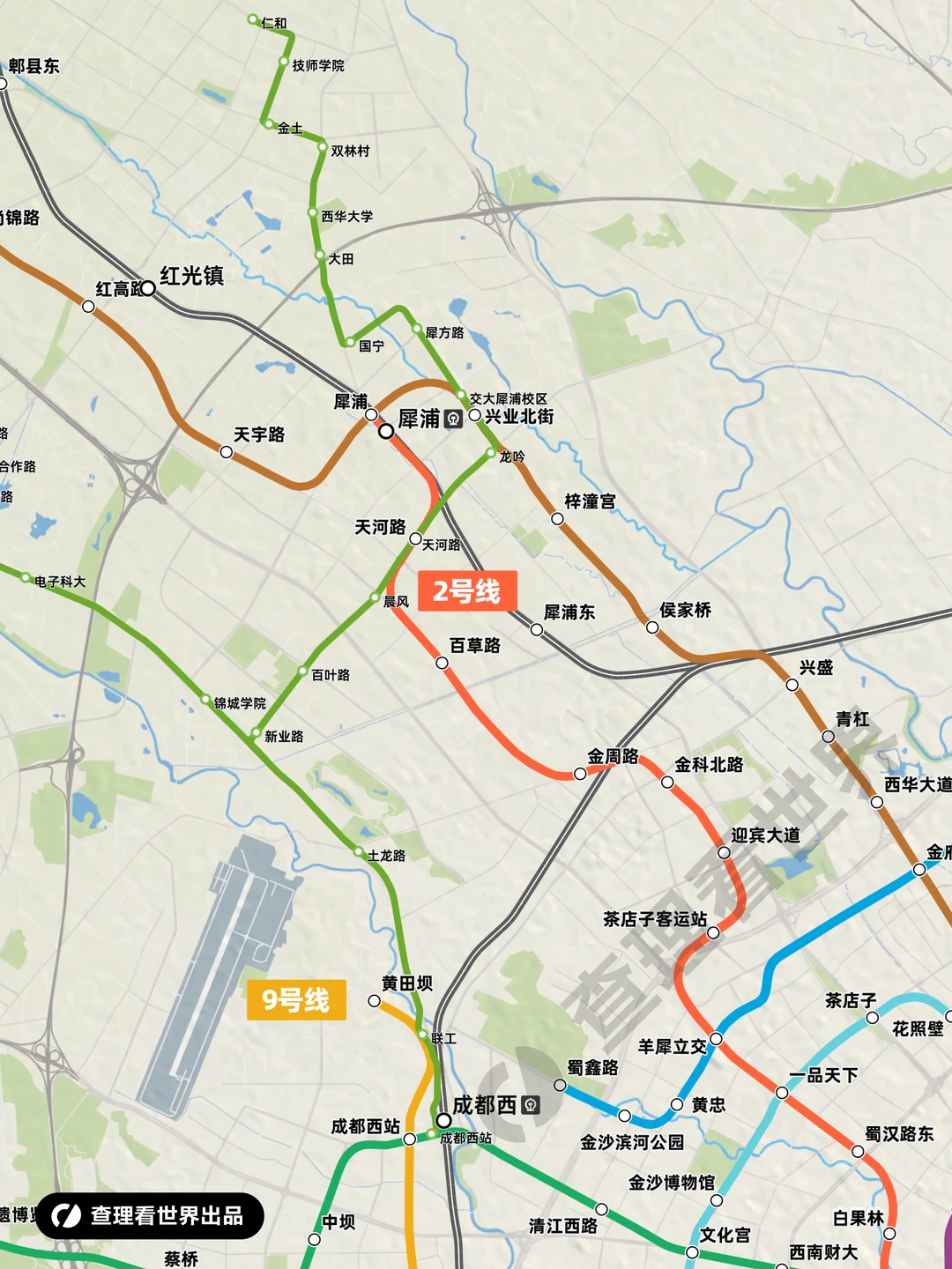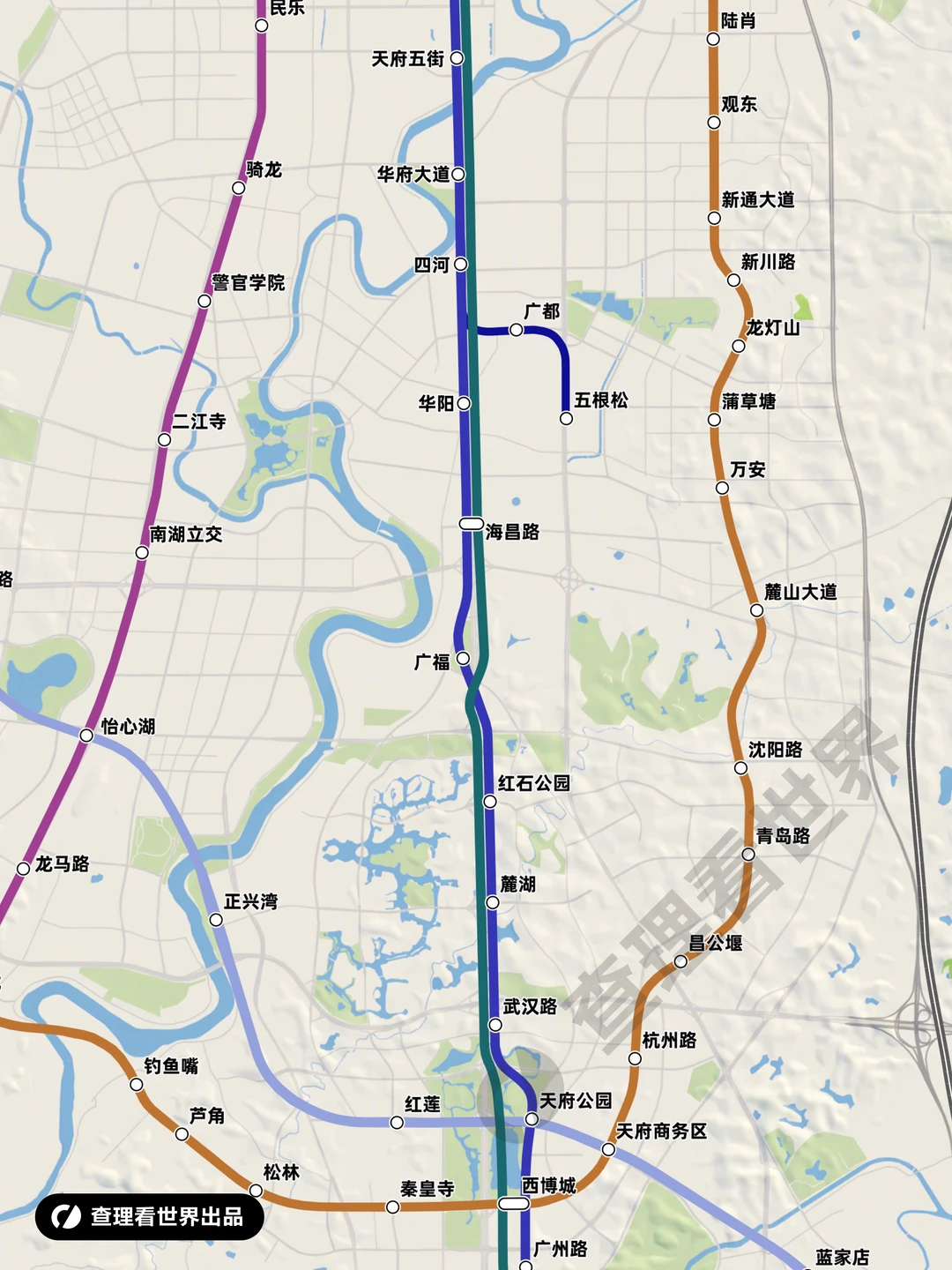 你会瞬间看懂:为什么成都地铁大多是东西 / 南北走向?因为成都坐落在川西平原,西侧是龙门山、邛崃山的高山屏障,东侧是龙泉山的丘陵带,平坦的平原腹地,让地铁线路能像棋盘一样舒展延伸。