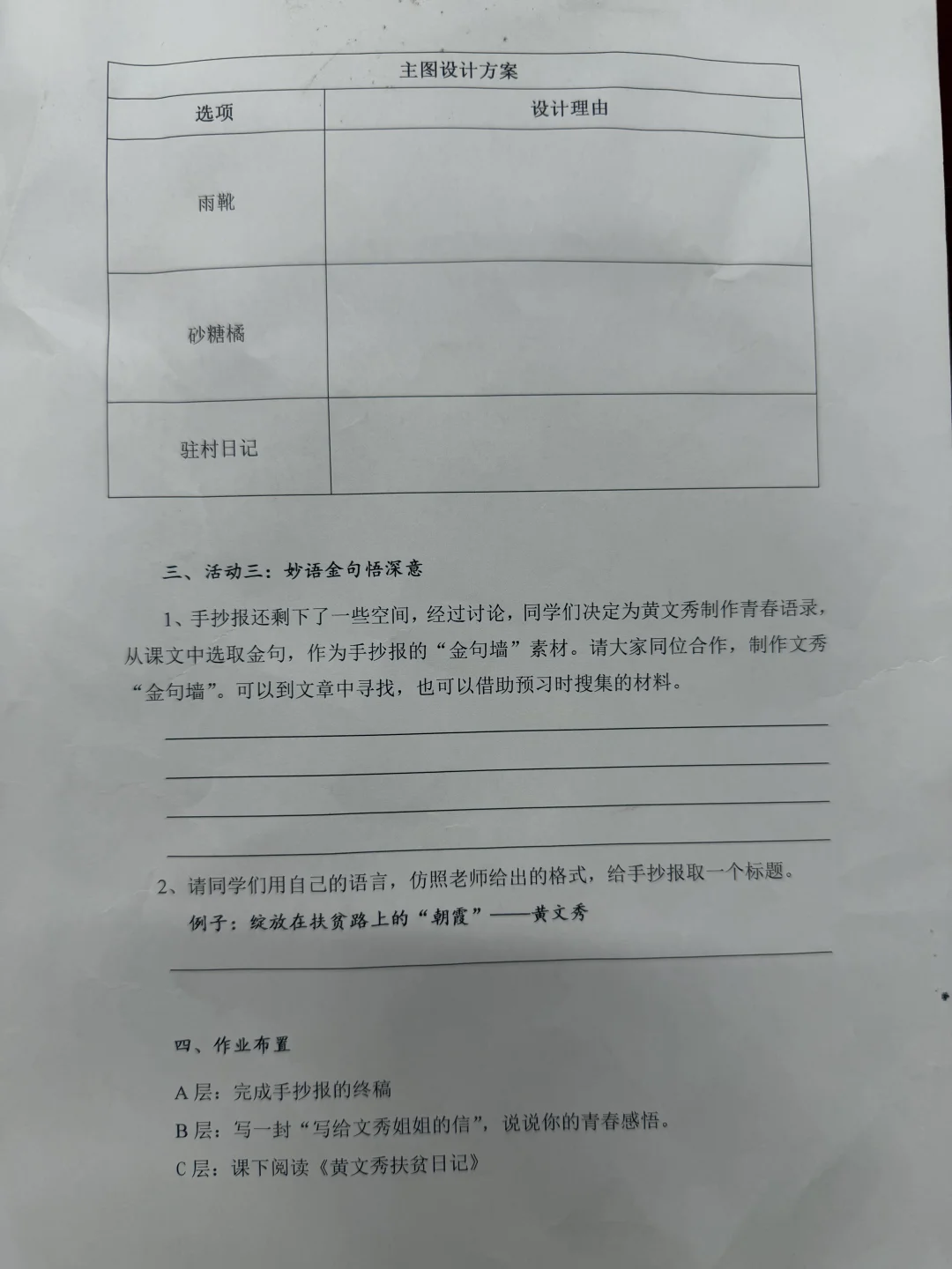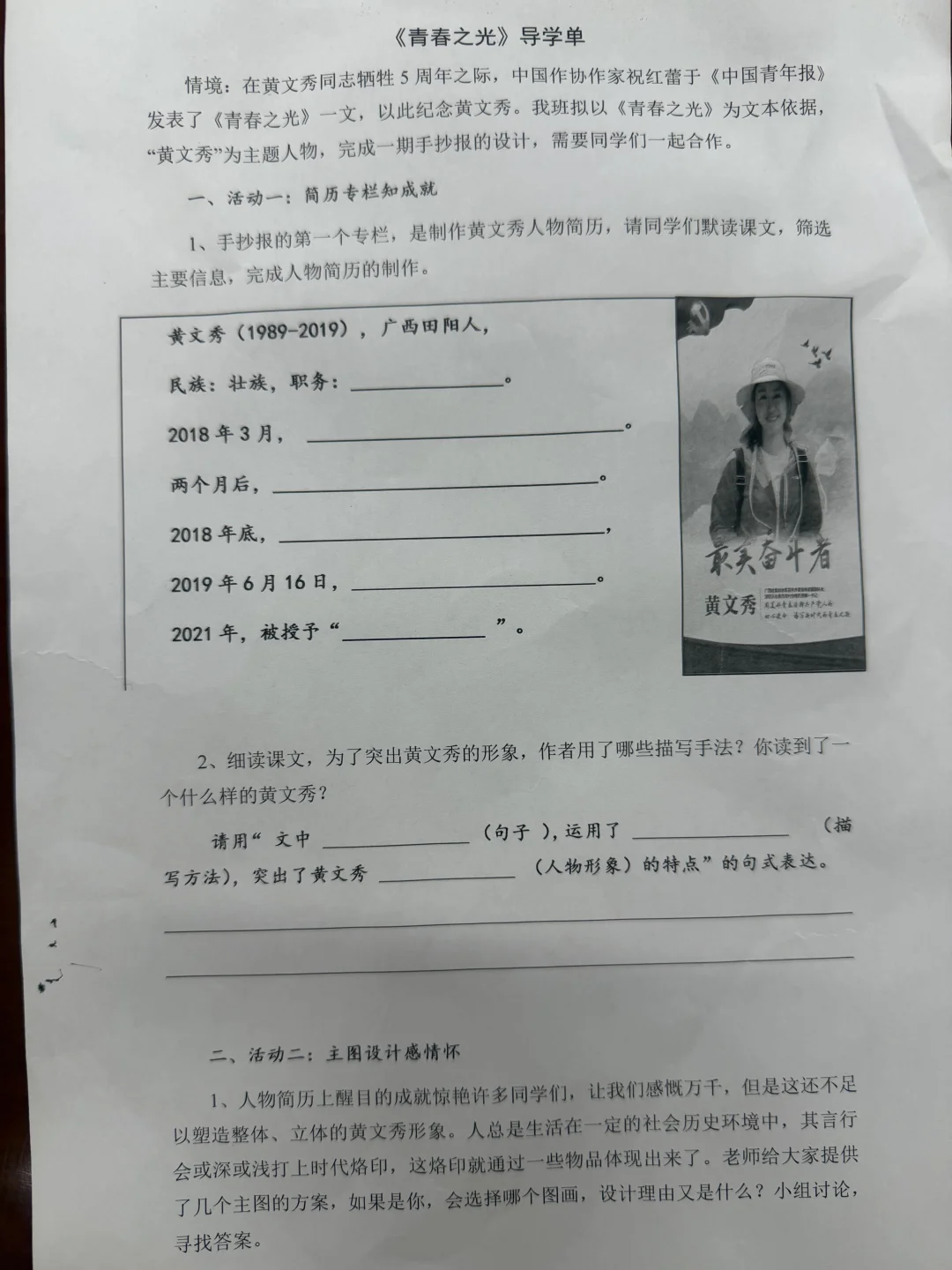 以手抄报为情景一“境”到底,梳理人物信息、分析人物形象、感悟人物情怀、抒发独特理解,操作性强😊 情景导入 活动一:简历专栏知成就 活动二:主图设计感情怀 活动三:妙语金句悟深情 布置作业 给大家参考一下,现场听课,没有其他资料。