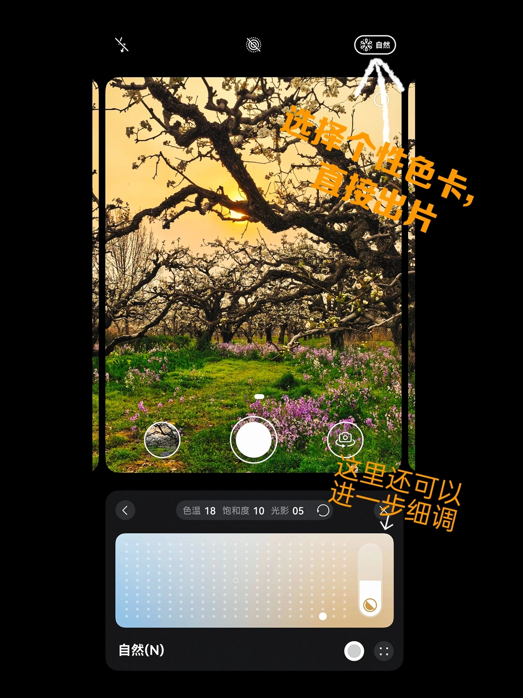 XMAGE个性色卡提供多种风格 ,拍摄自然景观选择自然色卡,微调后直接出片。