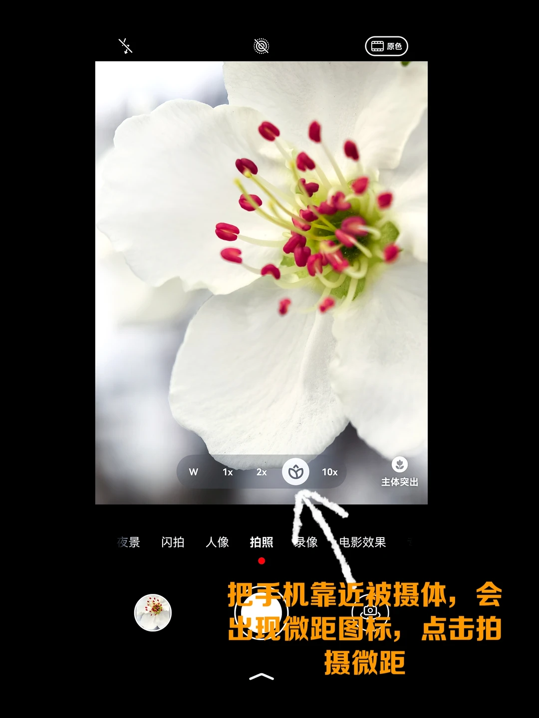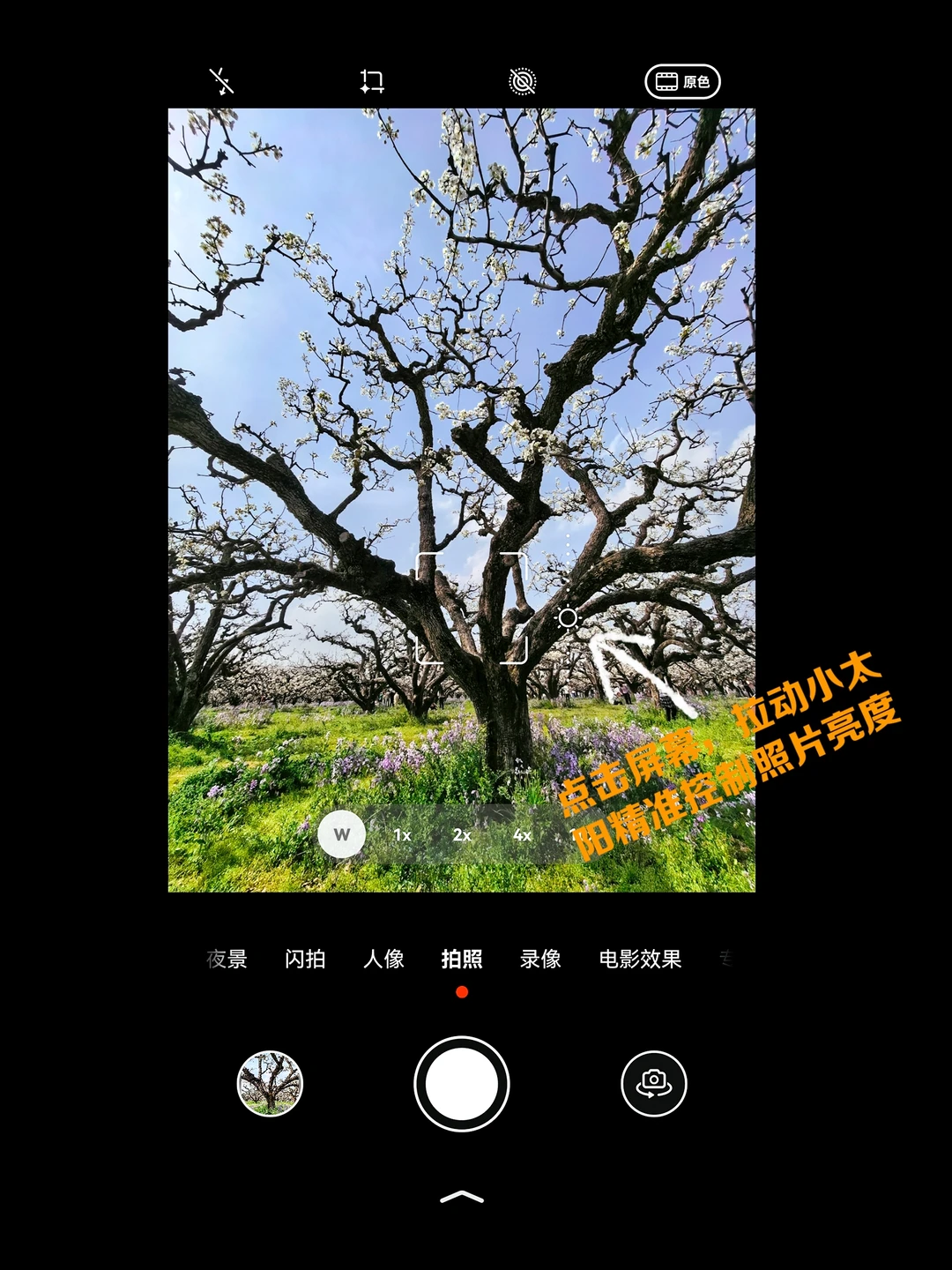 保留花瓣细节 拍摄时点击屏幕对焦梨花后,滑动右侧曝光条微调