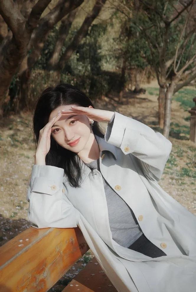 景甜的春日私服,真的美到心巴上✨ 浅灰风衣配针织衫,温柔又减龄, 这才是春日穿搭