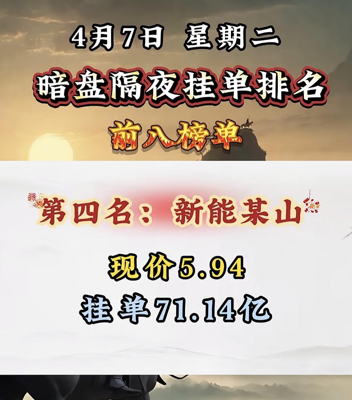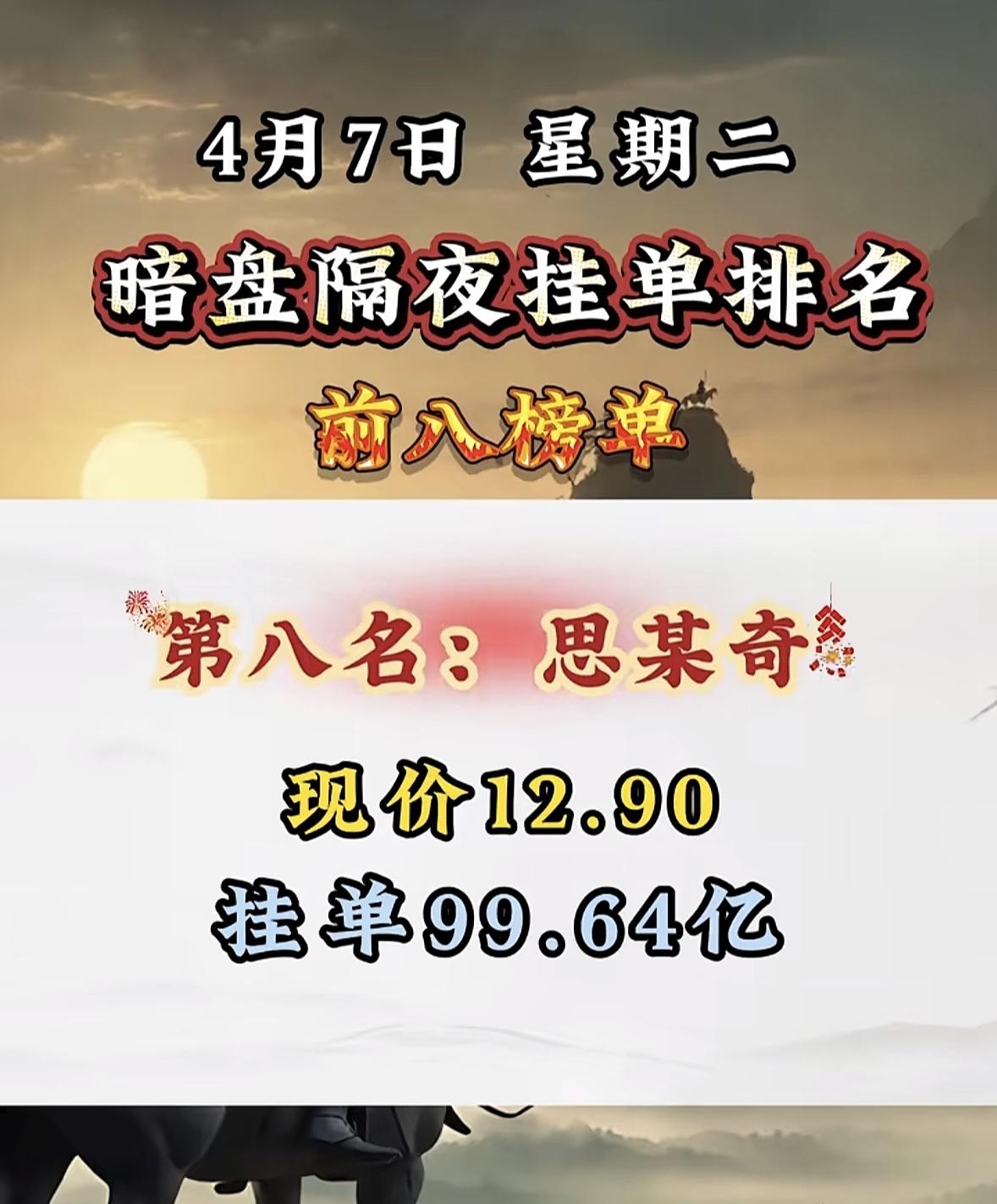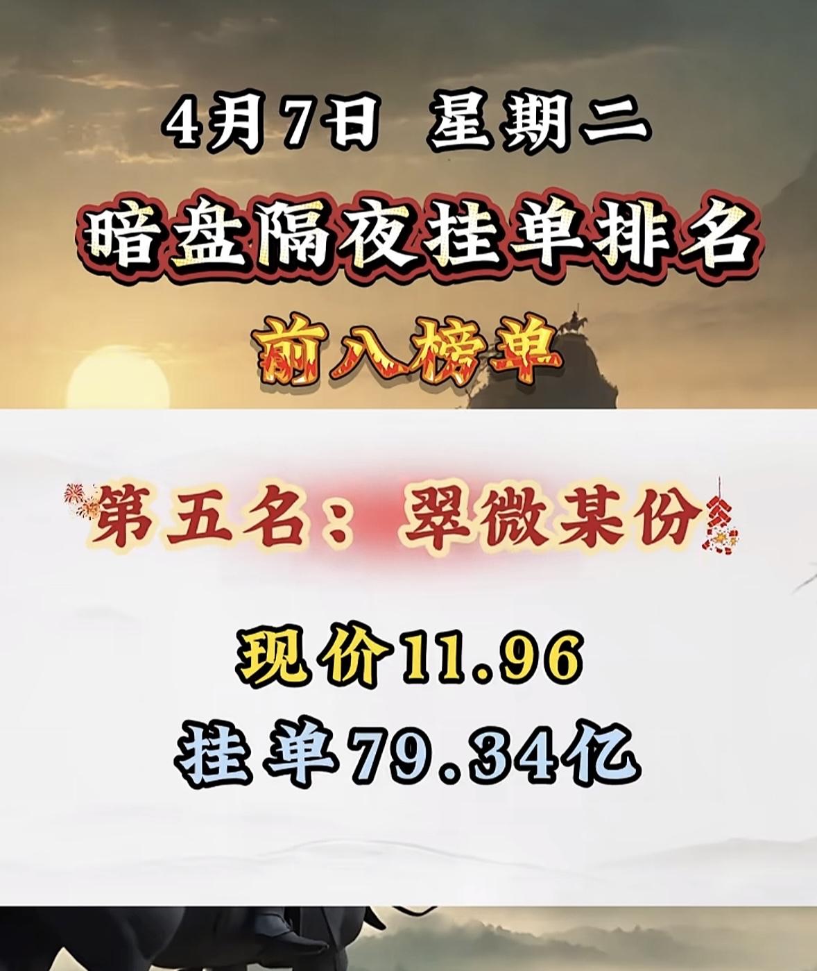 4月7日周二暗盘隔夜挂单排行榜出炉