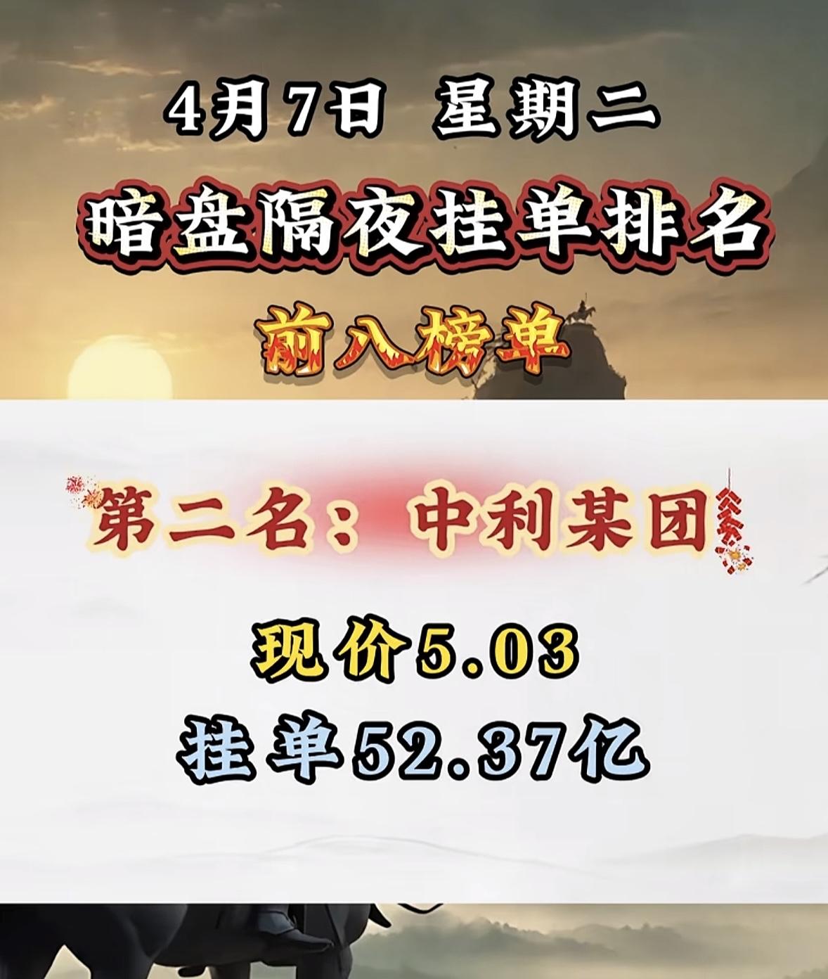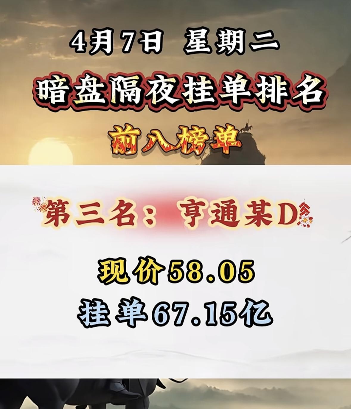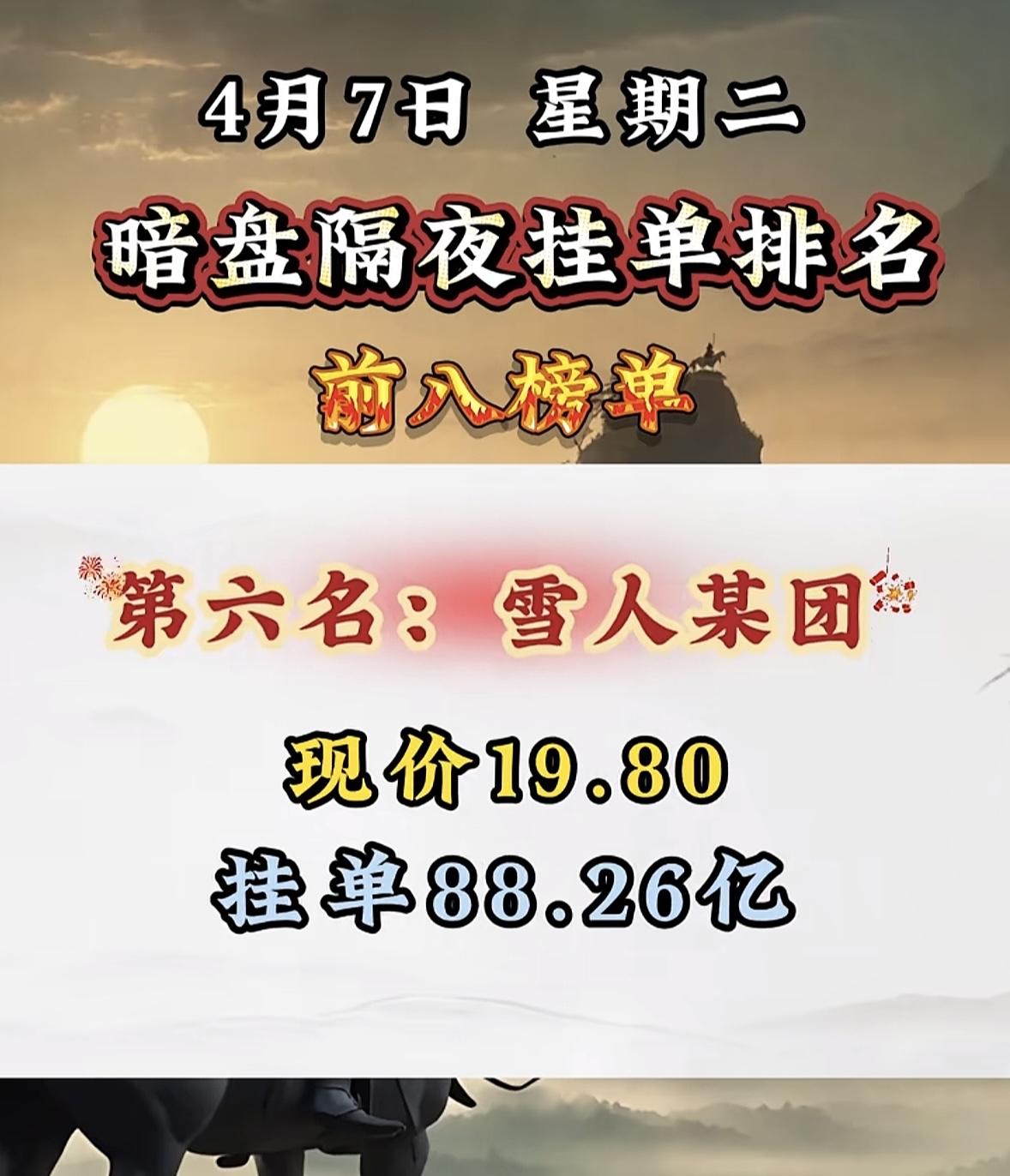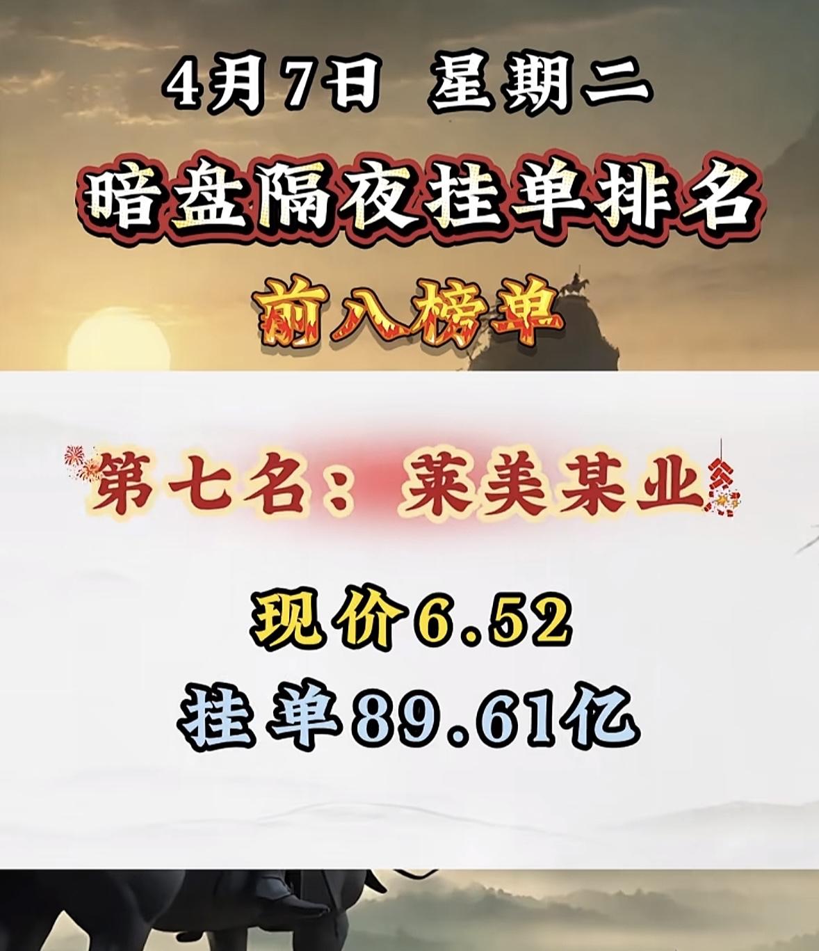 4月7日周二暗盘隔夜挂单排行榜出炉