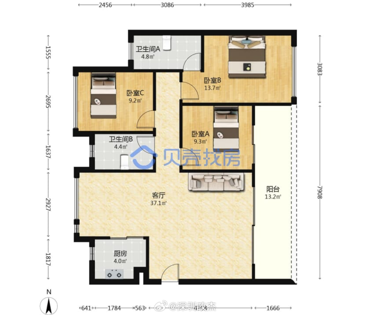 深圳前海桂湾的深业云海湾,116平3房2卫,租金16800元/月今天刚出租出去。