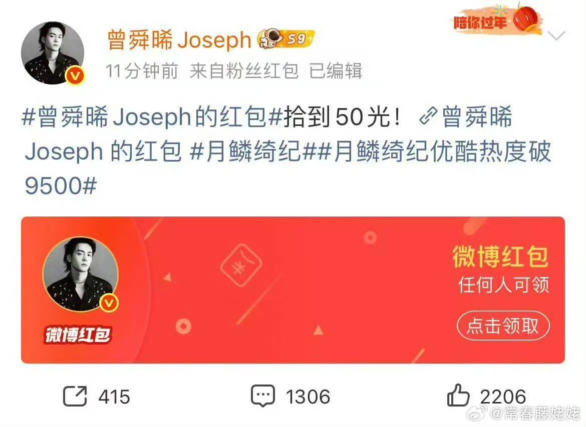 月鳞绮纪全员发红包庆祝破万月鳞绮纪 月鳞琦纪破万,主创们都在发大红包啊太豪了。话说,这剧真的不错,开播才3天就要登顶了,优酷这把又买股成功了