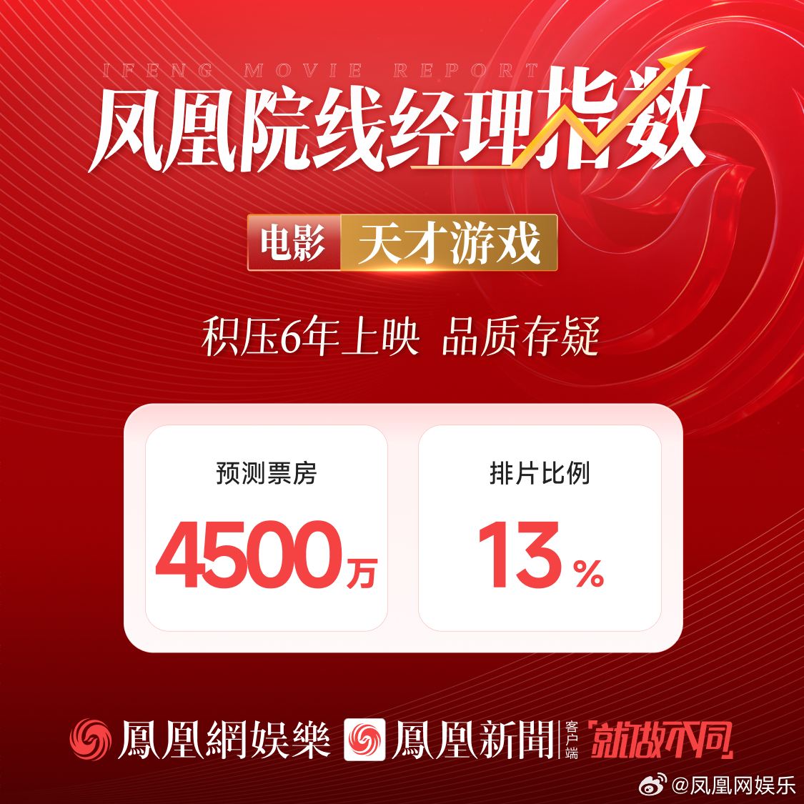 院线经理隋经理:高概念设定有吸引力,但积压片易显过时。口碑中等则5000万,口碑如果好可冲7000万。凤凰院线经理指数