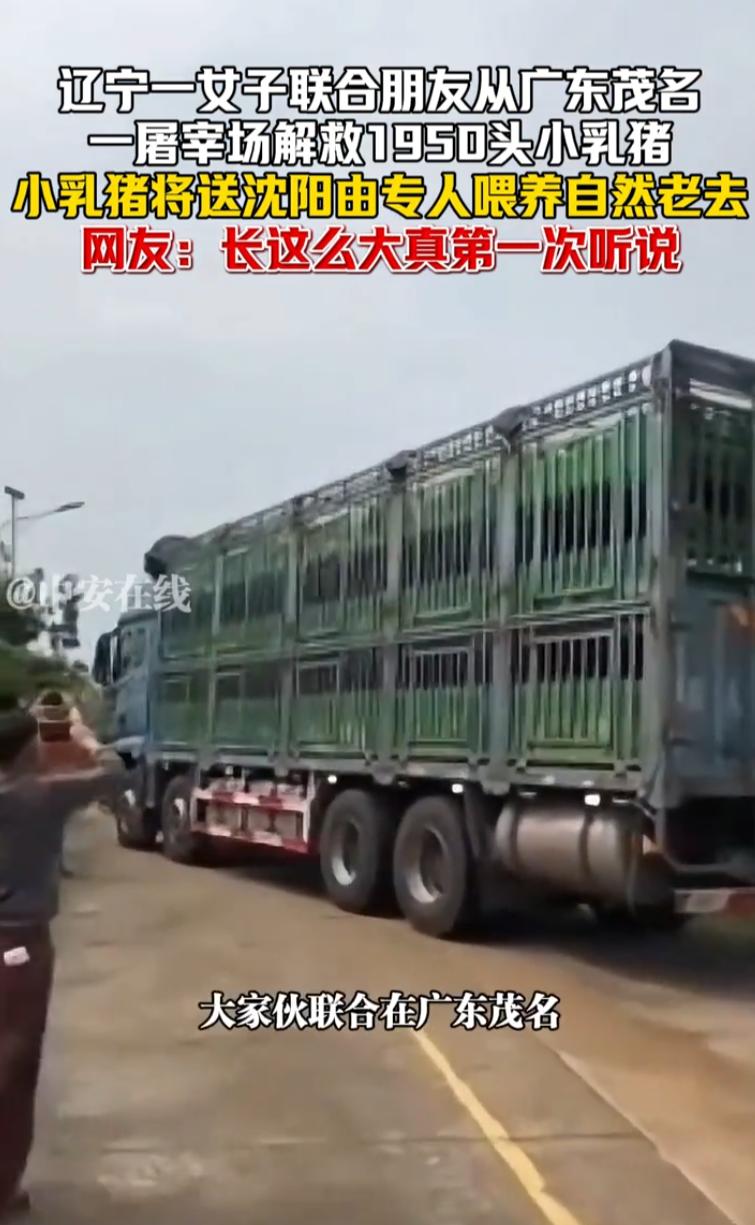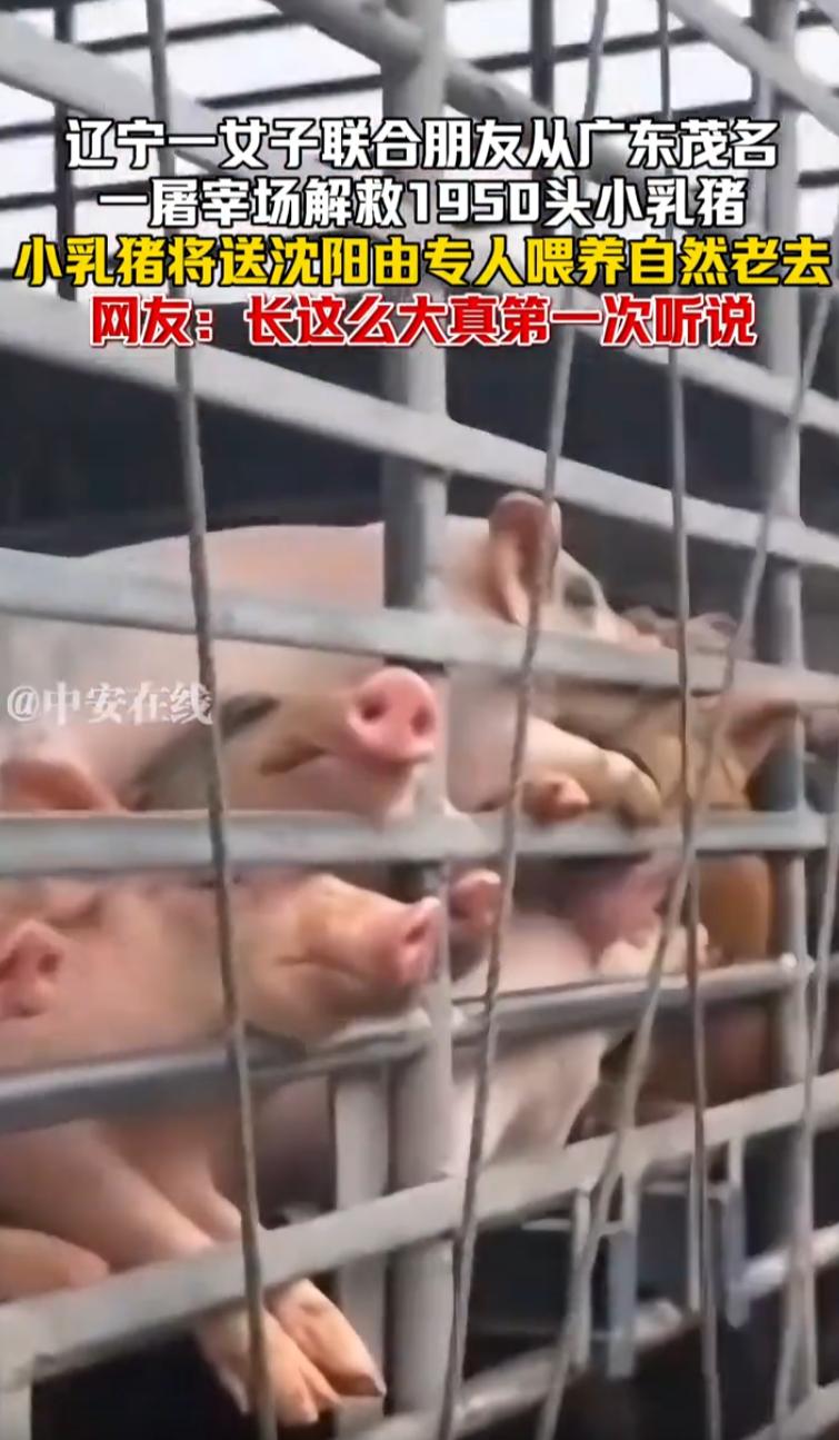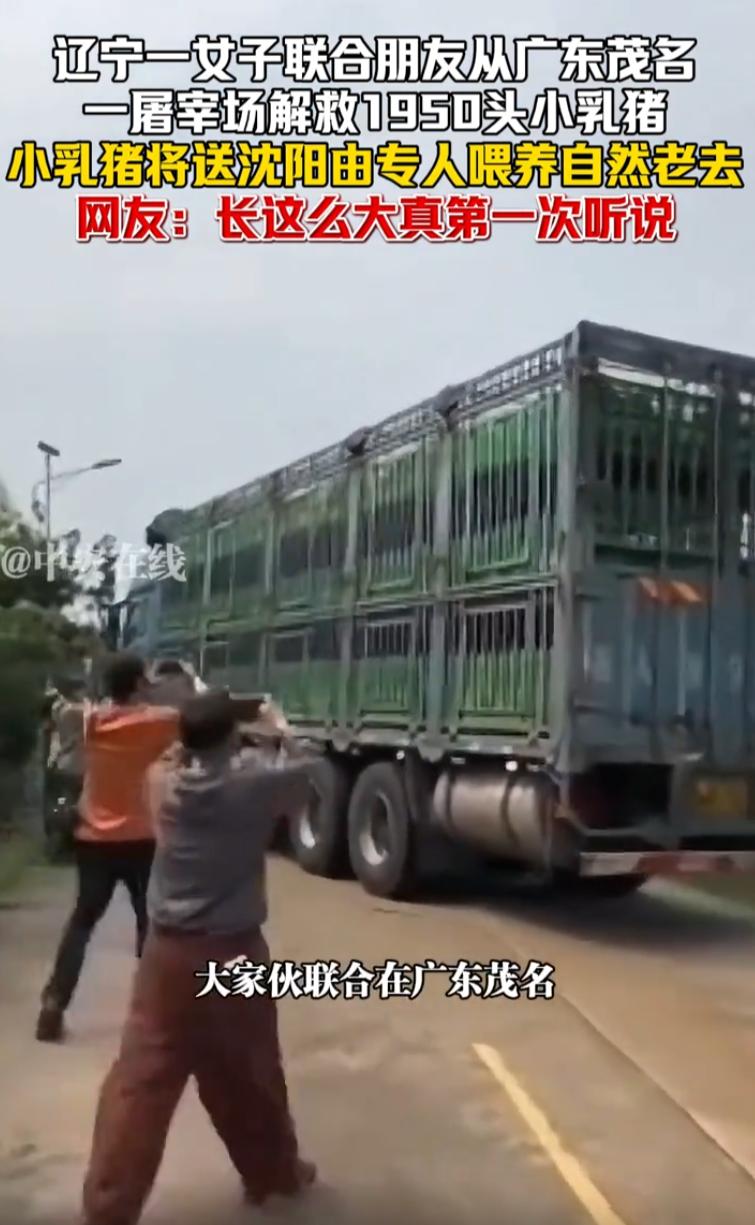 活久见!辽宁沈阳,一女子带着朋友来到广东茂名干了一件大事,几人来到当地一家屠宰场,买下1950头小乳猪,随后将它们送到沈阳喂养,直至最后老去,网友:能不能把我家的猪也给收走 视频里能看出来,大姐和朋友们一人举着手机,对着装小猪的货车拍个不停。她一边拍一边说:今天是4月2日,我们一起在茂名解救的1950只小乳猪,现在出发发往沈阳。回去之后有人专门喂养,一直养到它们自然老去 这话说得很清楚,不是买回去养大再卖,也不是养肥再宰,就是养着,养到老 视频发出后,绝大多数网友都表示无法理解 有网友调侃说:这是大客户啊,只要给钱就行。 继续补货,长期合作,做大做强,再创辉煌 还有网友说:听说过收养流浪猫、流浪狗的,解救小乳猪的还是头一次见 说实话,这个反应很正常。猪在大多数人眼里,首先是肉,是经济动物。小乳猪在很多地方本身就是一道菜。突然有人把它当成需要解救的对象,大家觉得奇怪,一点都不意外 这位大姐花的肯定不是小数目。1950头猪,就算按批发价算,一头小乳猪几百块钱,加上从广东茂名运到辽宁沈阳的运费,几千公里路,大货车,饲料,人工,场地,后期喂养成本,这笔账算下来,不是一般人能掏得起的 1950头猪,不是19头,也不是50头。这么多猪运回沈阳,每天光吃的就是一笔不小的开销。猪的寿命一般在15到20年,如果真的按她说的养到老,这个承诺要兑现,需要的不仅仅是钱,还有长期的场地、人力和精力。能做到什么程度,只有时间能给出答案 这事儿怎么看都有点荒诞。有人愿意为一群本来要上餐桌的小猪换一条活路,哪怕在大多数人眼里没必要,她自己觉得值就行。至于别人怎么看,那是别人的事。