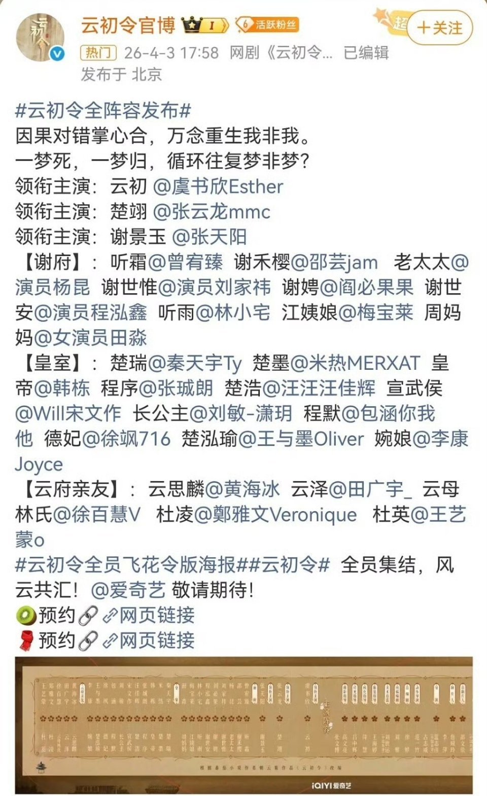 虞书欣云初杀青大吉,一番大女主单独一行哦!!