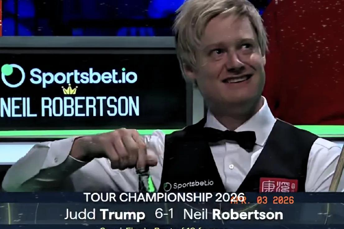 比赛几乎失去悬念,特鲁姆普7-1领先罗伯逊,结束第一阶段。前面3局,罗伯逊几
