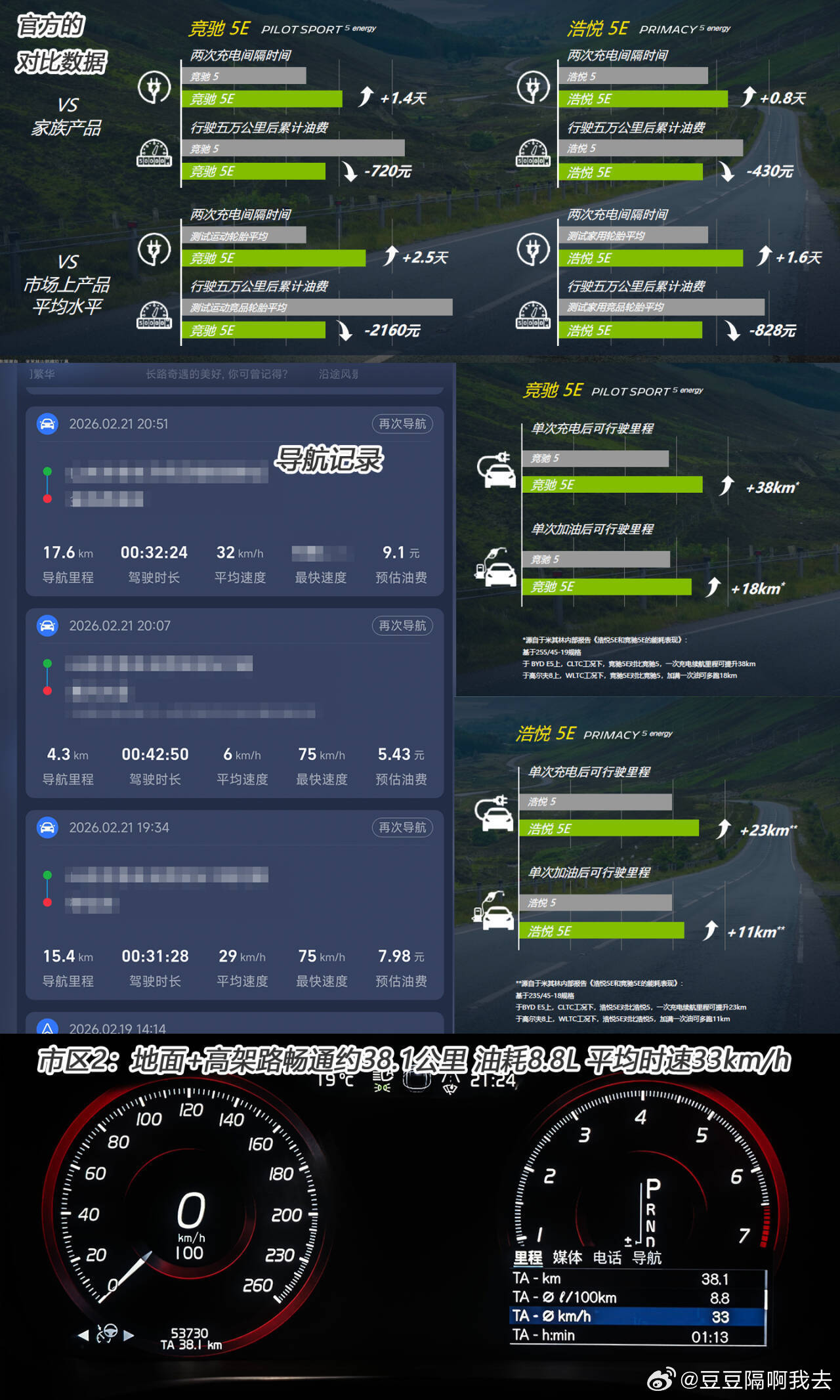没想过滚阻优化的胎湿地能有这个制动水平。干地没测试,湿地这个成绩已经足够证明其优秀了。——总的来说,这次P5e还是比较刷新我对新能源胎的认知。能做到抓地也好,能耗也很优秀的胎,我还没想到有谁。其他内容欢迎各位讨论。米其林竞驰5e米其林浩悦5e米其林米其林5e高强