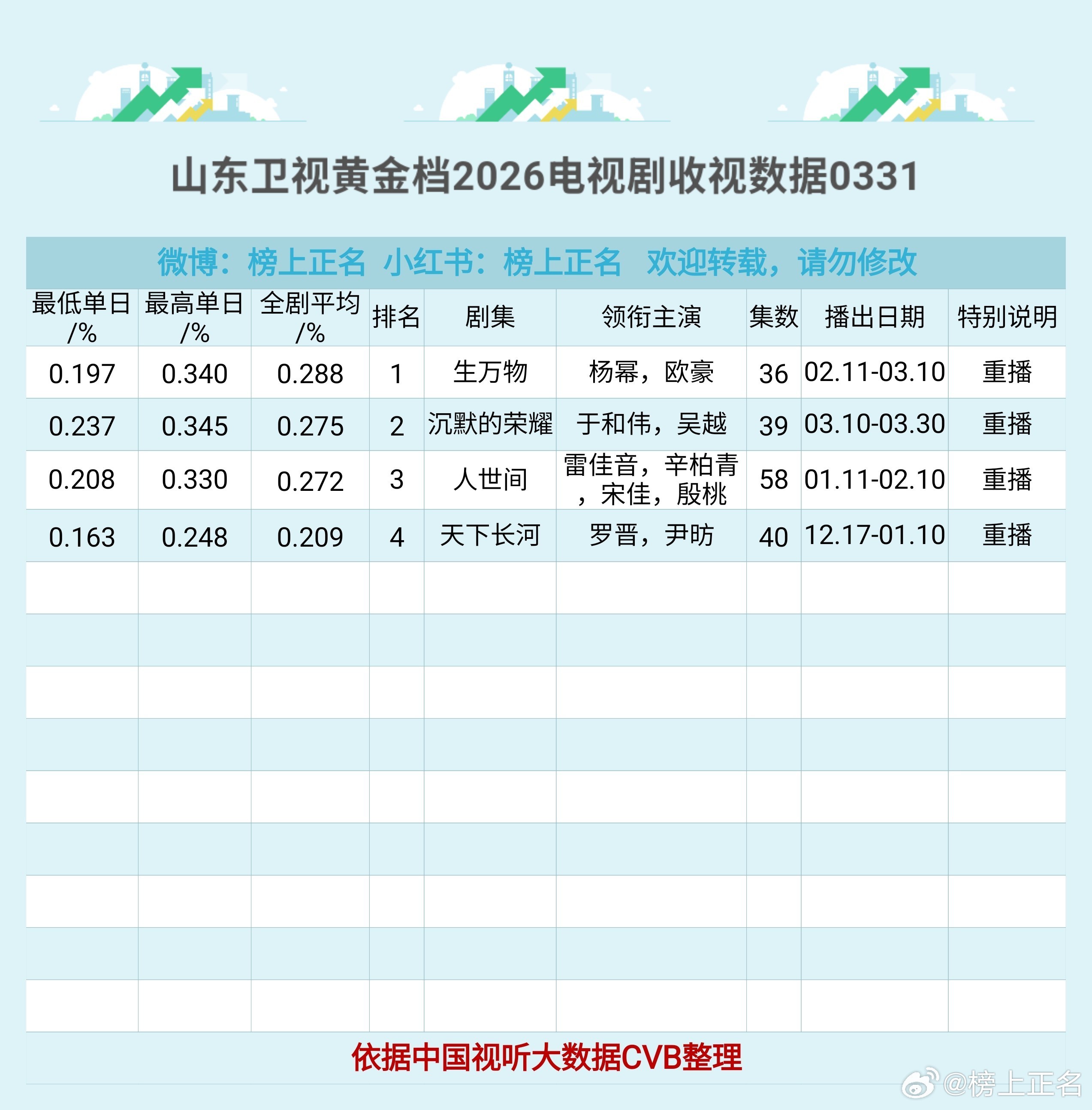 杨幂《生万物》位列2026年CVB其他平台黄金档剧集重播剧收视Top1 🏆 杨幂宁绣绣 同样是2026山东卫视黄金档剧集收视暂年冠🏆