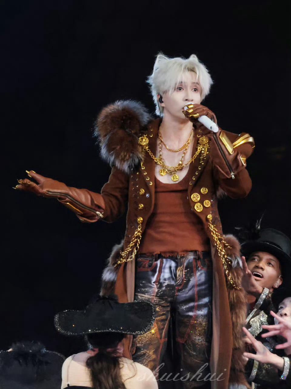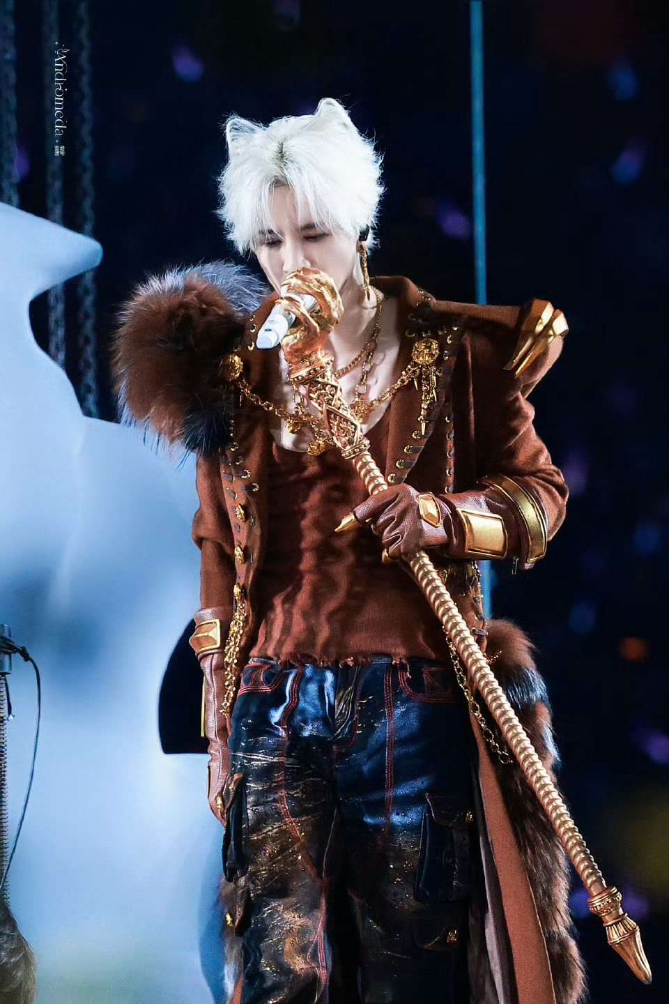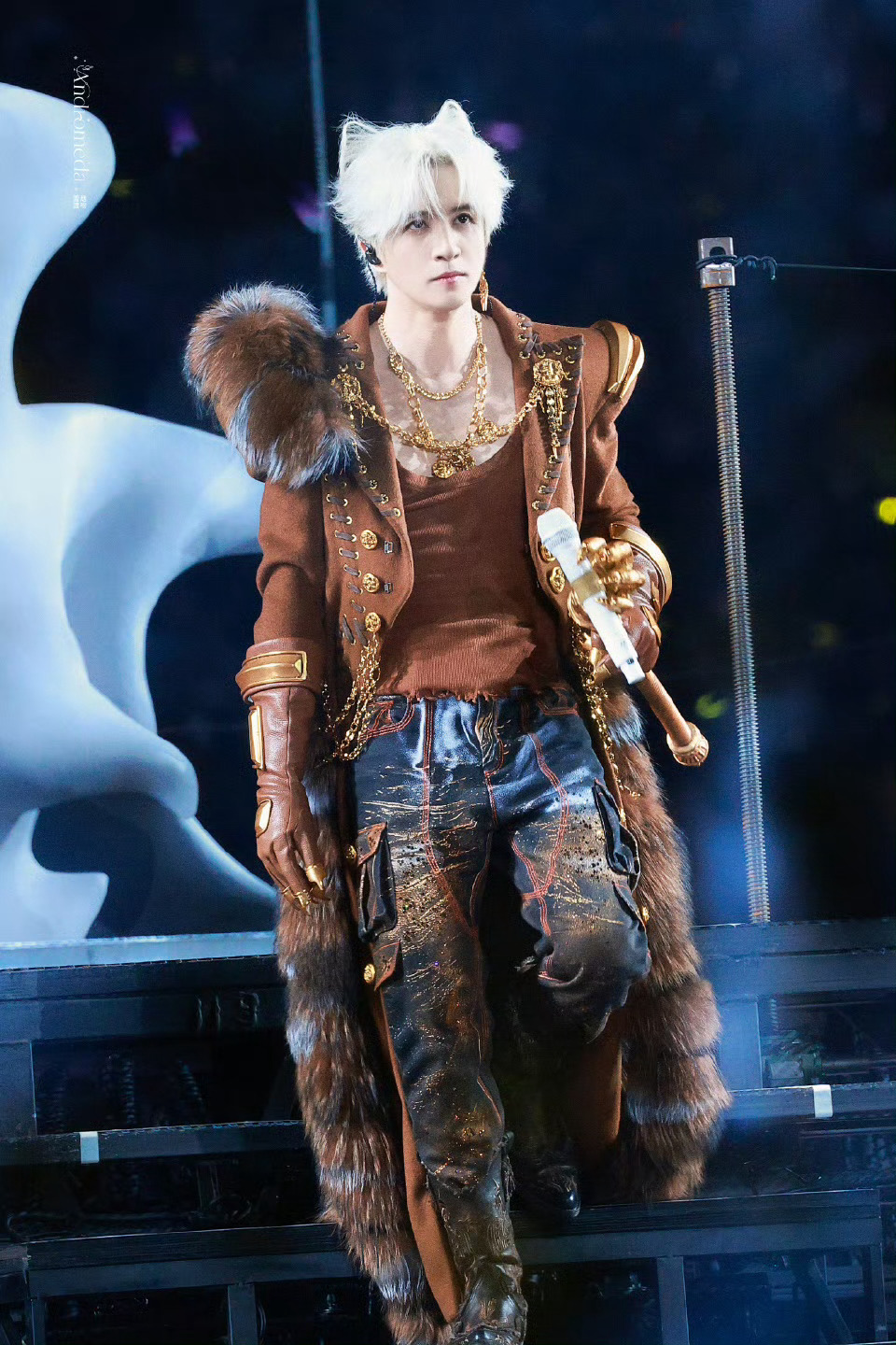 薛之谦白狐耳朵薛之谦兽耳谁被薛之谦的狐耳造型狠狠戳中!银发搭配软萌白狐耳,魅惑值直接拉满,华丽兽装衬得气场全开,舞台上的白狐王子,每一秒都在闪闪发光