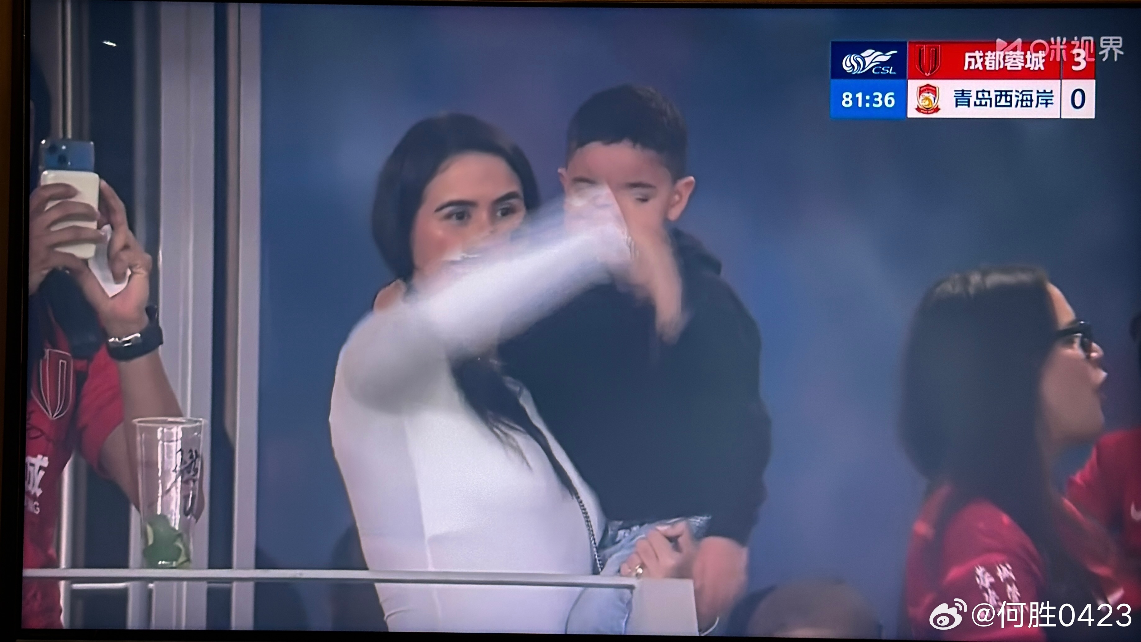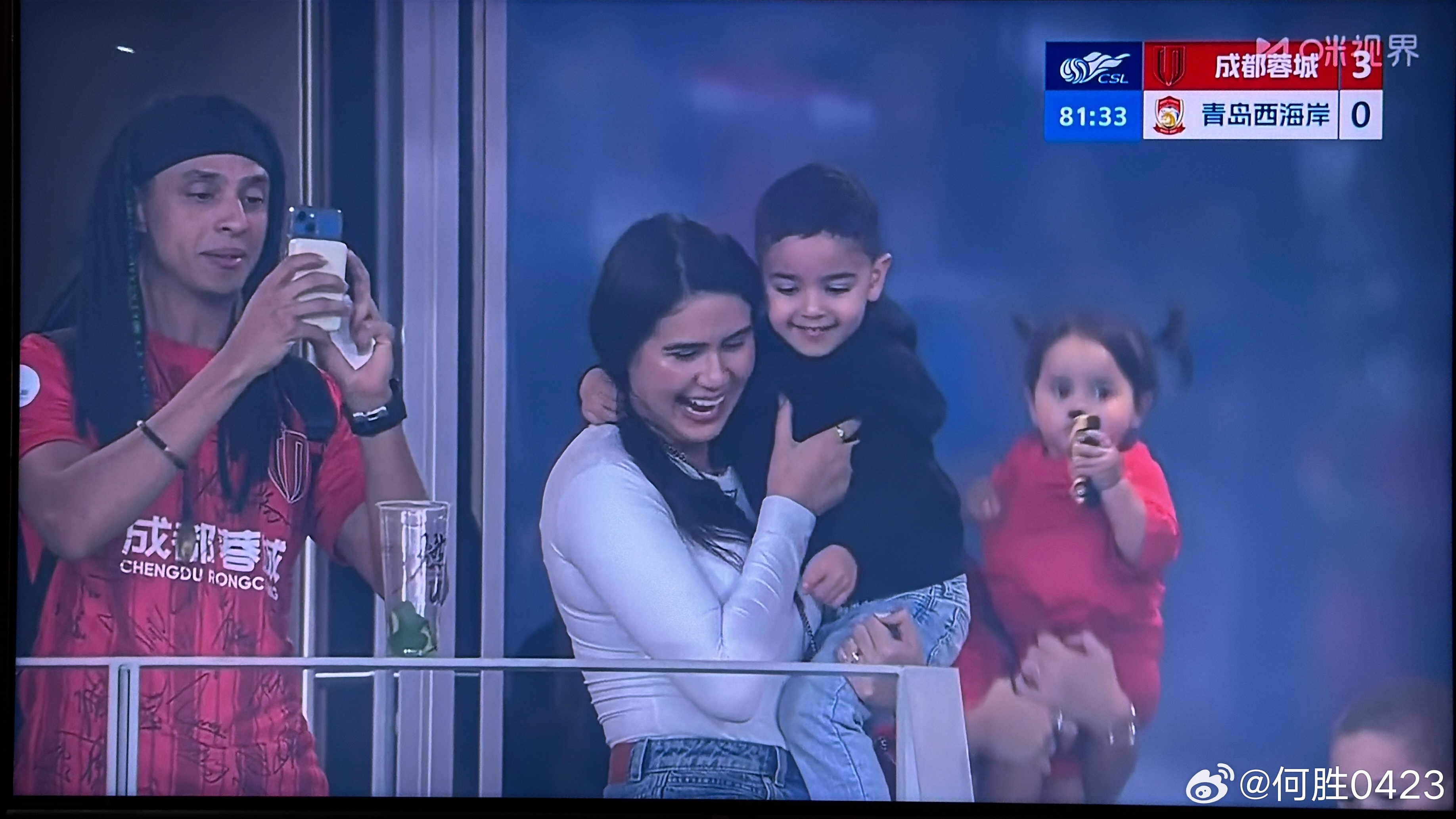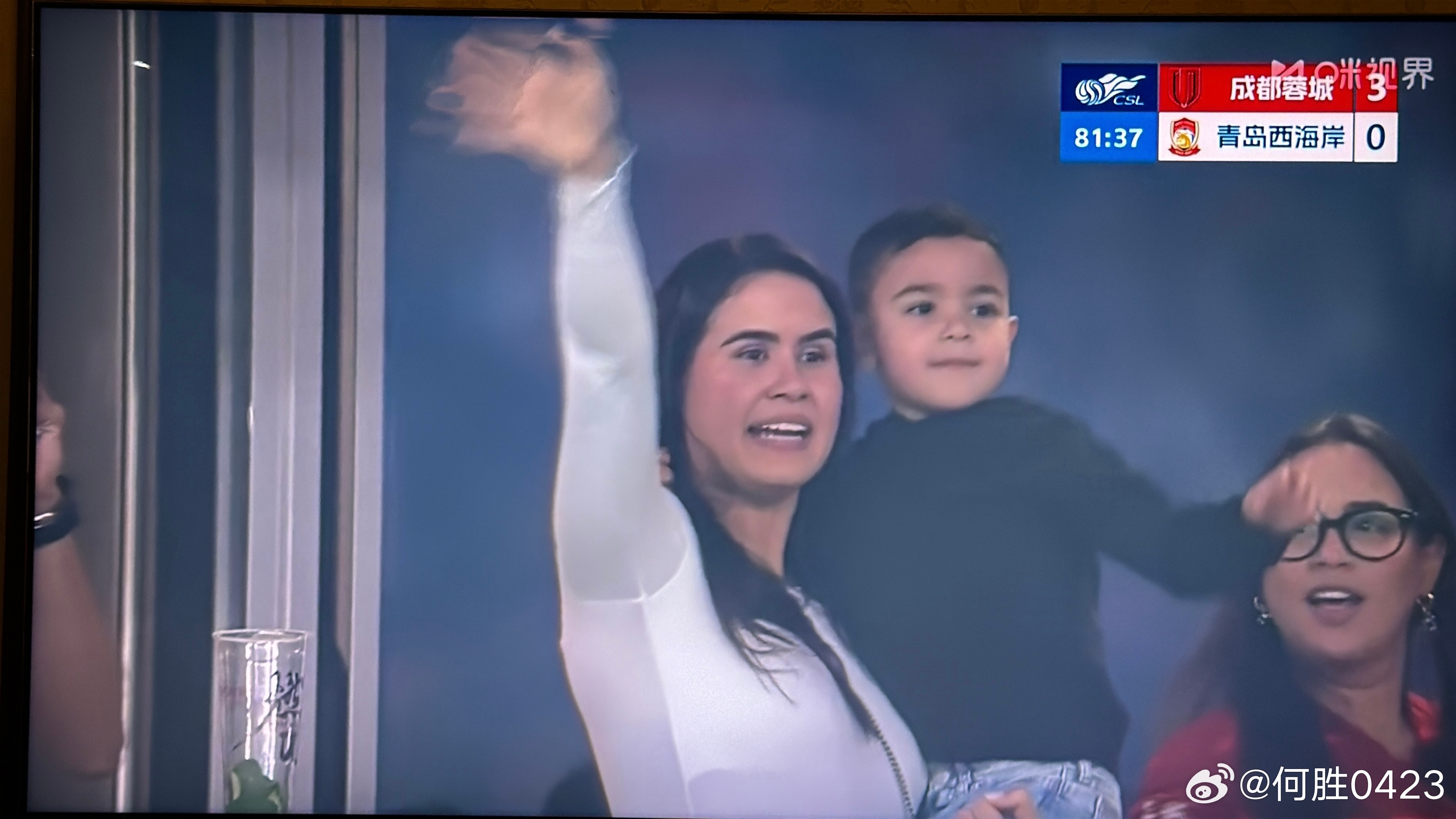 看台上,开心庆祝的费利佩家人球场边,神情落寞的主教练郑智
