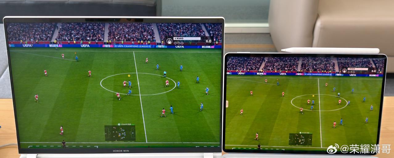 刚刚看到荣耀潇哥,分享了荣耀WIN游戏本运行实况足球的画面,而且能够在游戏过程中开启屏幕共享功能,并且展示了将当前屏幕内容,推送到荣耀平板上,除了游戏环境外,工作的时候,这个功能实在是事半功倍啊 畅聊数码新品 数码资讯