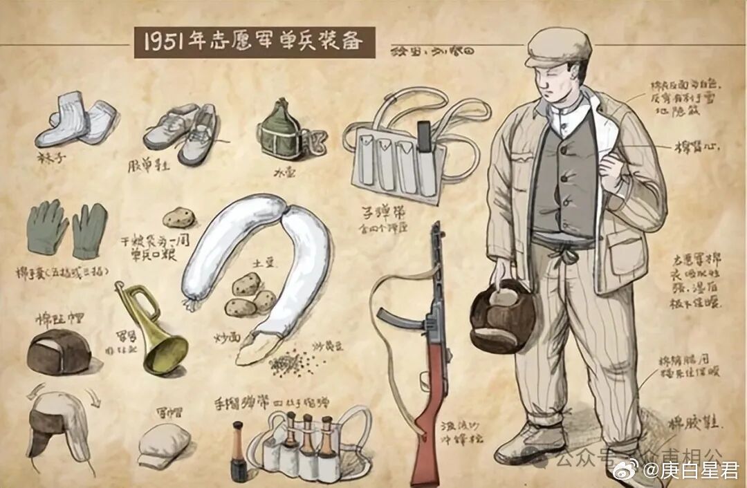 【从图中可以看出,炒面和土豆是那个时期志愿军的主要口粮】