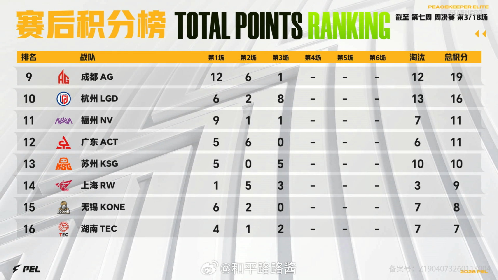获胜队伍:截至本场总积分榜第—名:第二名:第四名:第五名: