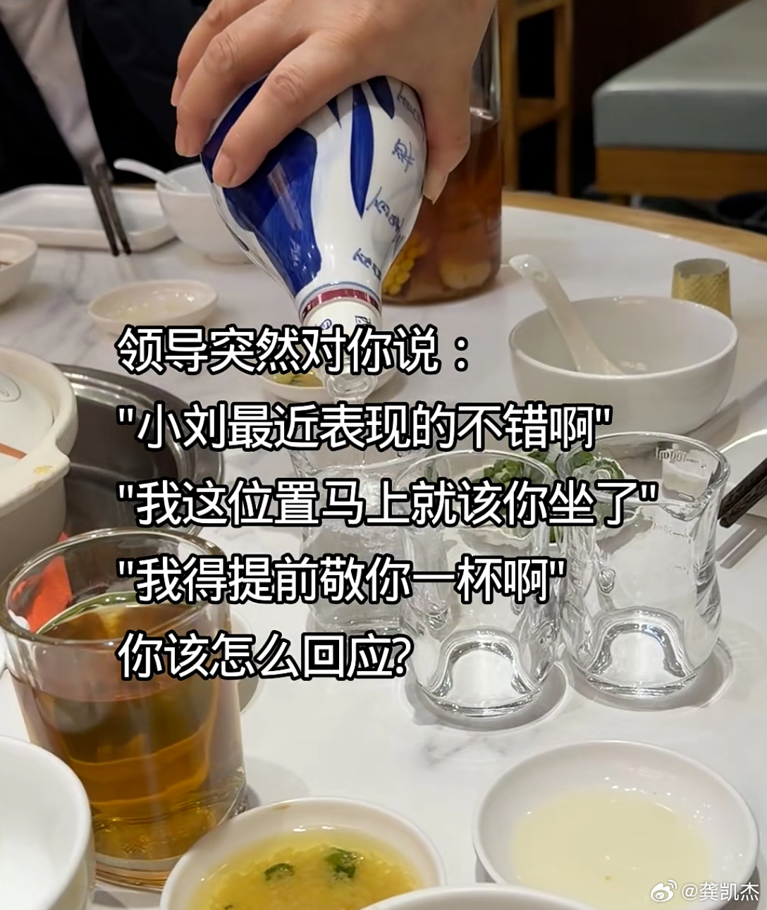 假如吃饭时,你的领导突然对你说:“小刘最近表现的不错啊,看来我这位置马上就该你坐了,我得提前敬你一杯啊!”此时高情商的你会如何回应?