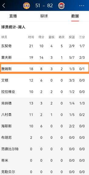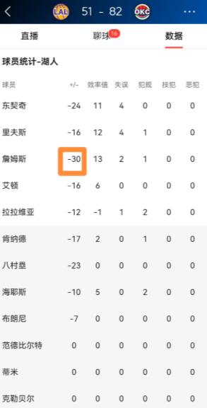 湖人超级巨星詹姆斯真是太想赢球了!在昨天湖人客场挑战雷霆的比赛中,目前双方半场战罢,虽然湖人以51:82落后对手31分,但是詹姆斯在攻防两端都拼尽全力,詹姆斯是湖人阵中最想赢球的球员之一。 北京时间4月3日,NBA常规赛迎来一场焦点对决,湖人客场挑战雷霆,上半场打完,比分被拉开到51-82,湖人足足落后31分,场面一度陷入被动。 熟悉詹姆斯的球迷都能看出来,这位湖人超级巨星是真的想赢,攻防两端都在拼尽全力,丝毫没有松懈,哪怕球队一直处于落后,他也没有放弃任何一个回合。 上半场比赛,詹姆斯首发出战18分钟左右,投篮3中1,三分球1中0,靠着8中6的罚球拿到8分,还有3篮板2助攻进账,同时出现了2次失误。 单看这份数据,不算亮眼,但结合他在场上的表现,能感受到他的努力——防守端积极协防补位,进攻端主动扛球突破、造犯规,哪怕手感不佳,也在尽力为队友创造机会,说是湖人阵中最想赢球的球员之一,一点都不夸张。 最让人疑惑的是,明明拼得那么凶,詹姆斯的场上正负值却达到了全队最低的-30,甚至创下了他生涯任意半场的正负值新低。 很多球迷看了数据都懵了,怎么一个拼尽全力的球员,正负值会这么难看? 其实说白了,正负值这个数据,从来都不是单看个人表现的,它反映的是球员在场期间,球队整体的比分输赢情况。 简单来说,正负值的计算方法很直接,就是球员下场时球队的分差减去上场时的分差,落后就记为负数。 詹姆斯上场的这18分钟,正好是湖人被雷霆疯狂拉开分差的阶段。 雷霆这边状态火热,尤其是亚历山大,上半场就拿下21分,多尔特也有14分进账,全队多点开花,进攻火力根本挡不住。 反观湖人,除了詹姆斯和里夫斯,其他球员状态低迷,进攻端持续哑火,失误不断,防守端更是漏洞百出,换防不及时,协防不到位,就算詹姆斯拼尽全力,也架不住队友整体不给力。 篮球从来都是五个人的运动,不是一个人能扛起来的,詹姆斯在场时,既要兼顾进攻,又要分心防守,就算他个人拼到极致,也难以弥补全队的短板。 还有一个关键因素,就是詹姆斯上场的时机,正好赶上雷霆的进攻高潮。 首节一开始,雷霆就打出18-4的开局,之后一路扩大领先,第二节更是直接把分差拉开到30分以上。 这段时间里,詹姆斯几乎没有休息,全程在场上苦苦支撑,但队友始终找不到状态,进攻端无法有效得分,防守端拦不住对手,分差越拉越大,他的正负值自然也跟着下滑。 很多人会用正负值衡量球员的贡献,但其实这个数据存在一定的局限性,它太依赖团队表现和上场时机,不能单独用来评判一个球员的好坏。 詹姆斯上半场的表现,肉眼可见的努力,8分3篮板2助攻虽然不算突出,但在全队低迷的情况下,已经是尽力而为。 这场比赛的上半场,与其说詹姆斯表现不好,不如说湖人全队都不在状态,雷霆则是打出了极致的团队篮球。 詹姆斯的-30正负值,更像是这场半场惨败的一个缩影,而非他个人能力的体现,毕竟篮球不是一个人的游戏,再强的巨星,也需要队友的配合和支撑。 下半场比赛,湖人想要逆转难度极大,但相信詹姆斯依然会拼到最后一刻。 至于这个让人费解的正负值,不用过度解读,它只是一个反映团队状态的数据,不能掩盖詹姆斯想赢球的决心和赛场上的努力。 以上都是个人观点,对此您有什么不同的看法,可以在评论区留言讨论!!!