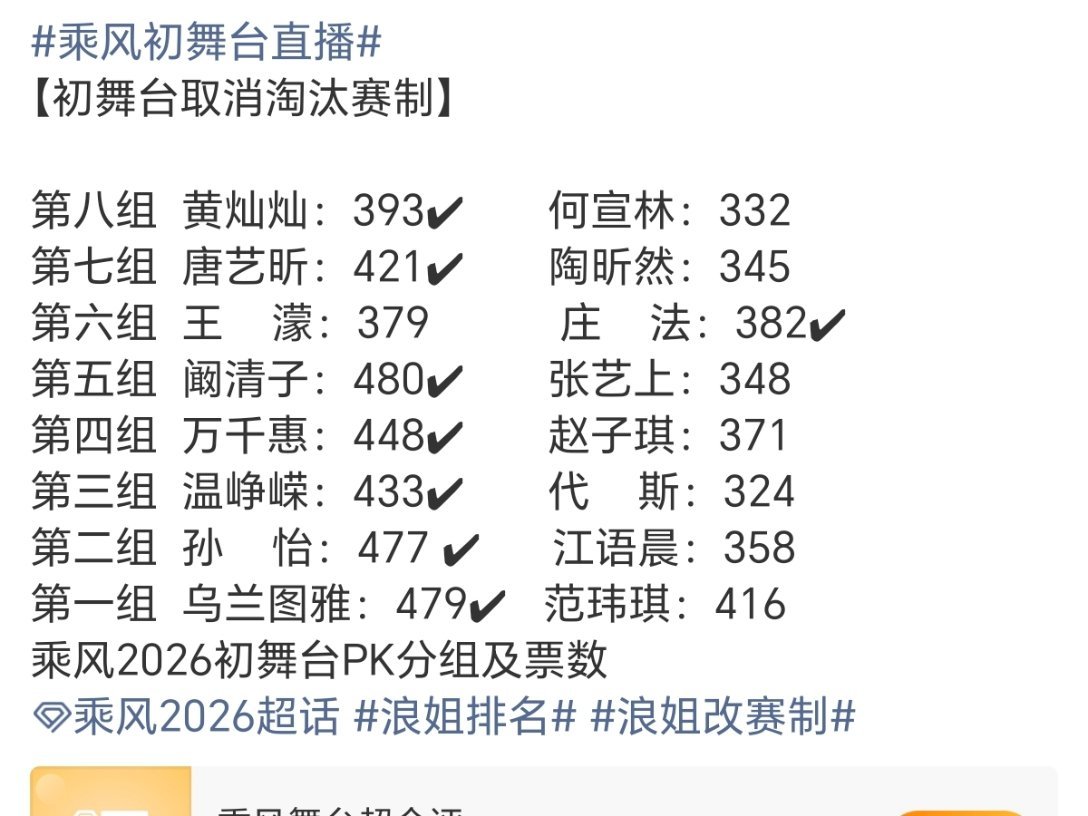 浪姐排名乘风初舞台部分投票排名已出炉 符合你们的预期吗 代斯的感觉舞台表现力蛮好的 跳舞挺有女团的风格🤗