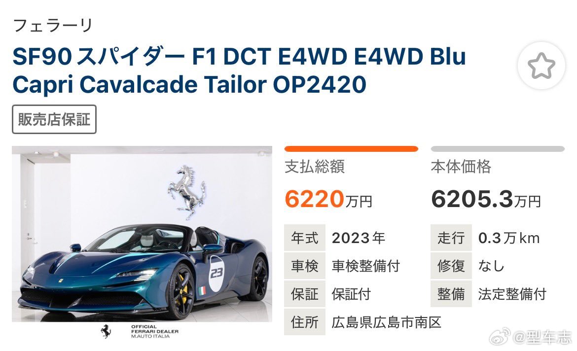 这辆带Tailor Made定制、Cavalcade纪念属性的法拉利SF90 Spider,选配到天花板,颜色巨美只跑了3000公里。如今二级市场6220万日元,换算下来人民币200多万。看来性能车加电是真不保值,连法拉利也不例外。工信部紧急提醒苹果用户