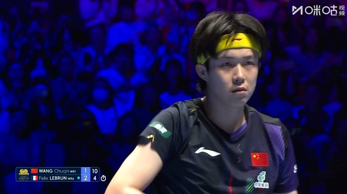 王楚钦终于打出气势来了, 侯英超直接明牌,要不拧拉,要不劈长, 前三局, 勒布伦2-1领先, 第四局, 开局比分咬得很紧, 在3:3平后, 王楚钦连续劈长得分, 勒布伦被打的有点被动, 相持球上王楚钦逐渐占据上风, 在7:3领先后, 连得4分, 11:4,王楚钦将大比分扳成2-2平