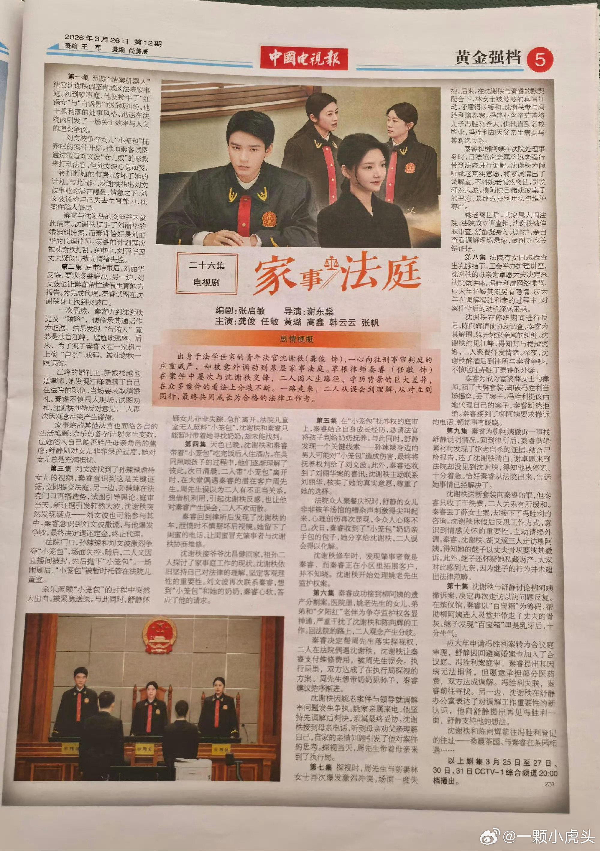 龚俊家事法庭主流宣发排面,纸质报纸和平台齐上阵!好剧就该正向推广!
