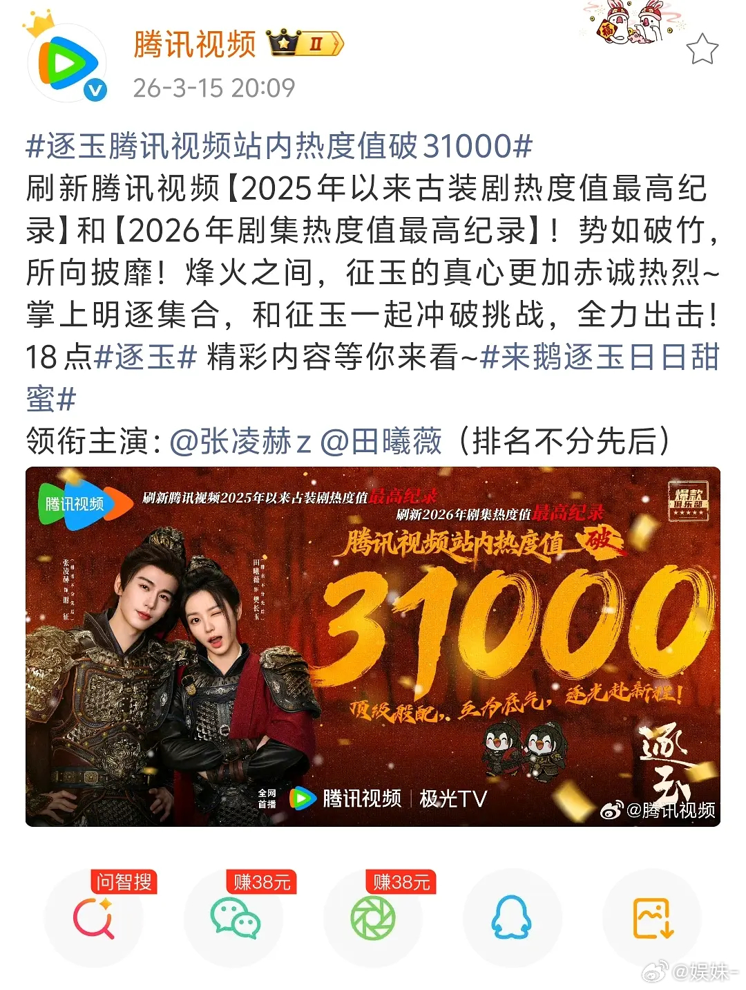 我有种预感,张凌赫肯定是得罪圈内大佬了。影视寒冬这么久,好不容易出来一部《逐玉》