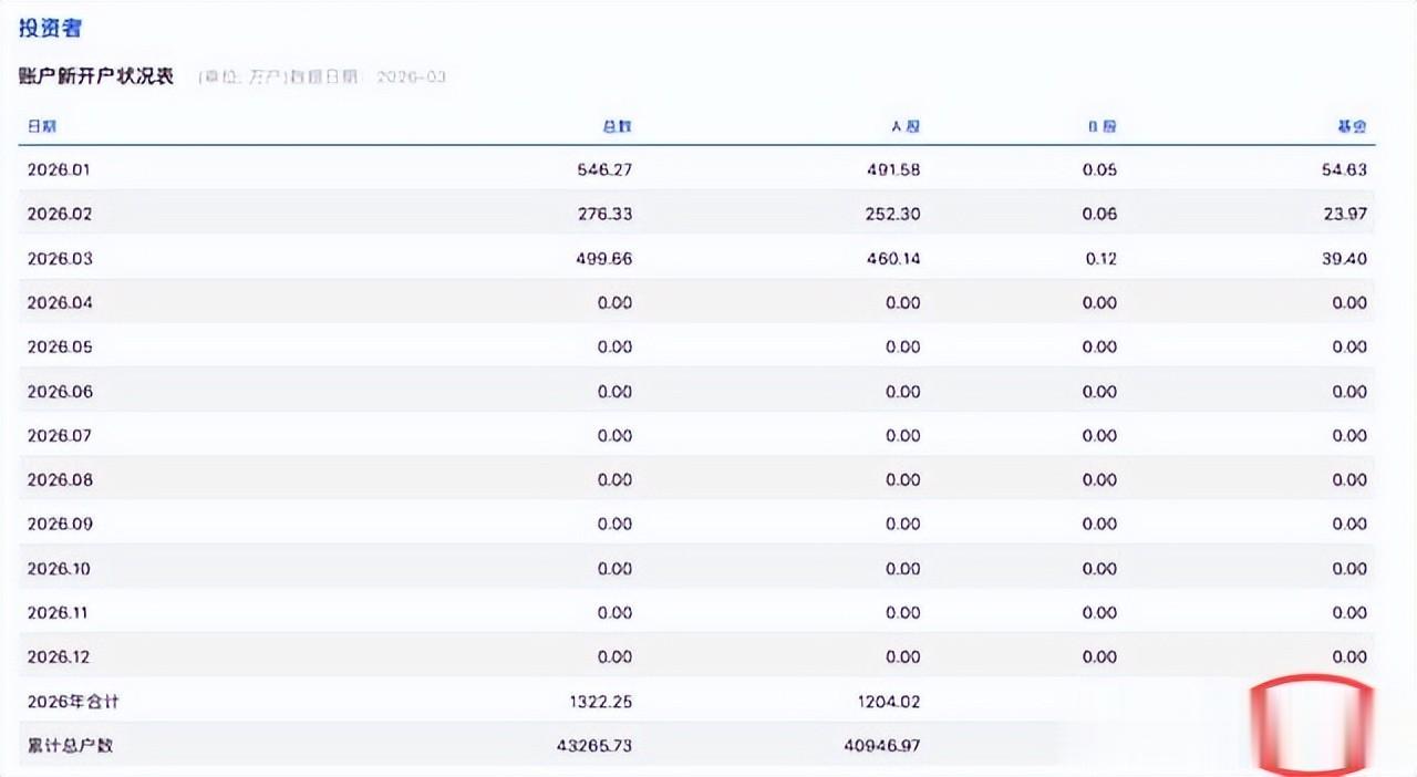 最新数据,2026年3月A股新开户数达460.14万户,环比激增82.38%,同比上涨50.10%。