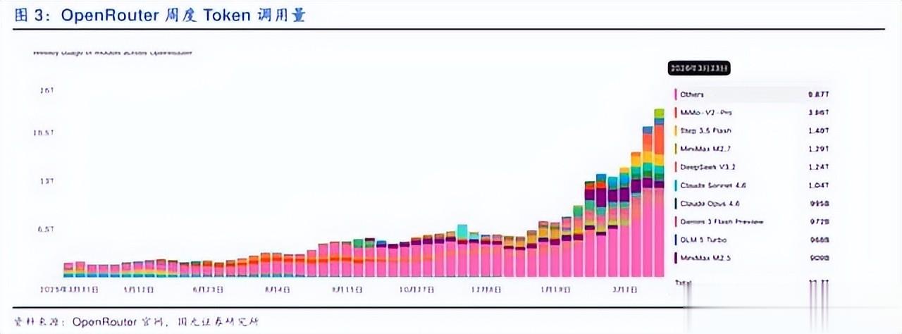 另外据第三方平台OpenRouter统计,2026年3月底当周,中国大模型周调用量达7.36万亿词元,连续三周超过美国(2.95万亿)。